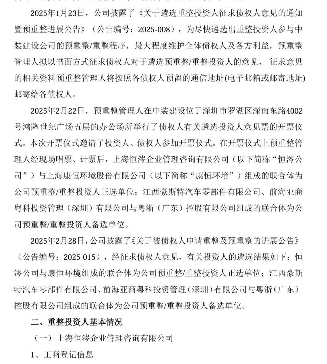 从开始申请预重整到法院正式受理重整用了一年时间,因为之前有预重整,招募战投,确认债权等工作所以后面进度就很快了,