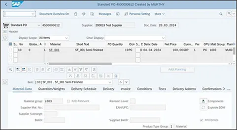 分包是一种特殊的采购流程,在该流程中,供应商使用采购组织提供的组件来生产/组装半成品,或执行某些增值服务,如包装、返工等。分包的项目类别用于识别订单中的分包项目。分包流程可以由物料需求计划(MRP)触发,也可以由涉及维护订单的维护流程中的维护操作触发,由涉及网络活动的项目系统中的网络活动触发,或者由涉及流程/生产订单处理的生产过程中的外部操作触发。分包流程可以通过创建采购申请手动启动,也可以直接通过创建分包订单启动。不过,生产和维护流程广泛使用分包流程,在制造业中尤为如此。下图展示了分包流程的所有环节。物料管理提供了一种灵活性,即可以直接从另一家供应商处采购所需组件,并让该供应商直接将组件运往分包商。创建一个标准采购订单,并在“交货地址”选项卡中包含具有供应商角色的分包商业务伙伴编号,这样外部供应商就可以直接将组件运往分包商。必须创建一个物料清单(BOM)作为前提条件,其中应包含分包商要生产/组装/返工的父项物料,以及要提供给外部分包商的组件详细信息。完成此操作后,流程步骤如下:为启动分包流程,物料计划员将使用事务代码MD01N针对计划独立需求运行MRP。系统会为最终产品(BOM表头)或子组件(半成品)生成分包采购申请。系统会从采购主数据(货源清单和分包信息记录)中指定一个分包商(供应商)作为供应源。申请行项目的项目类别将为L(分包)。组件将自动从BOM添加到分包采购申请的“物料数据”选项卡中。生产流程、维护流程、项目系统等可以通过各自的流程生成分包申请来启动分包。我们将通过提供综合视图详细解释这些流程步骤。分包流程也可以通过使用事务代码ME51N手动创建分包申请来启动。选择项目类别L(分包),然后输入要从分包商处接收的最终产品、数量、交货地址(工厂地址)等信息。要提供给分包商的组件可以手动输入,也可以从BOM中获取。分包采购申请可以由采购人员通过事务代码ME21N手动转换为分包订单,也可以自动转换。包括组件在内的行项目详细信息将默认填充到采购订单中。分包操作的服务费将从分包信息记录(PIR)中默认获取。分包订单将根据输出方式(电子邮件、电子数据交换(EDI)或通过SAP业务网络进行电子传输)发送给分包商。下图展示了一个参考采购申请创建的分包订单,显示了一个项目类别为L(分包)、物料为SF_001(半成品)的行项目。分包商将生产10件半成品SF_001。要查看要提供给分包商的组件,可点击项目详细信息“物料数据”选项卡中的“组件”图标。下图展示了要提供给分包商的组件。您可以通过事务代码ME22N(采购订单更改)直接在采购订单中手动添加/删除组件。流程的下一步是创建外向交货单,以便将组件发放给分包商。将使用事务代码ME2O参考分包订单创建外向交货单。在完成物料的拣配和包装等库存管理功能后,将参考外向交货单过账发货。移动类型在确定库存移动类型和发货过账方面起着重要作用。移动类型541用于将组件发往外向交货单以运往分包商。移动类型541确保提供给分包商的组件得到跟踪,并且所有权仍归请求外部操作的公司所有。分包商接收组件,并使用采购组织发放的组件执行所请求的操作。然后,分包商将生产/组装好的最终产品发货。一旦分包商的货物到达,将使用事务代码MIGO和移动类型101在SAP S/4HANA中参考分包订单手动过账收货。从分包商处收到的最终产品库存将在库存中增加。如果收到了提前发货通知(ASN),或者需要创建内向交货单来处理收货,则将使用事务代码VL32N参考内向交货单过账收货。过账收货后,将自动使用移动类型543过账提供给分包商的组件的消耗。此货物移动将减少库存中提供给分包商的组件数量。分包商通过电子邮件(纸质发票)、EDI或通过SAP业务网络以电子方式发送外部操作的发票。在纸质发票的情况下,应付账款人员将在SAP S/4HANA系统中使用事务代码MIRO手动过账供应商发票文档。如果从供应商处收到电子发票,则会自动过账和核对发票。下一次计划付款运行将选取这张已完全核对的发票,并根据供应商首选的付款方式向供应商付款。应付账款人员也可以手动处理针对已完全核对发票的付款。你若喜欢,点个❤️谢先👇