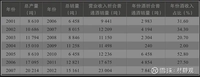 茅台酒从生产到销售需要5年的时间,所以2006年的销量大概对应2001年的产量,以次类推