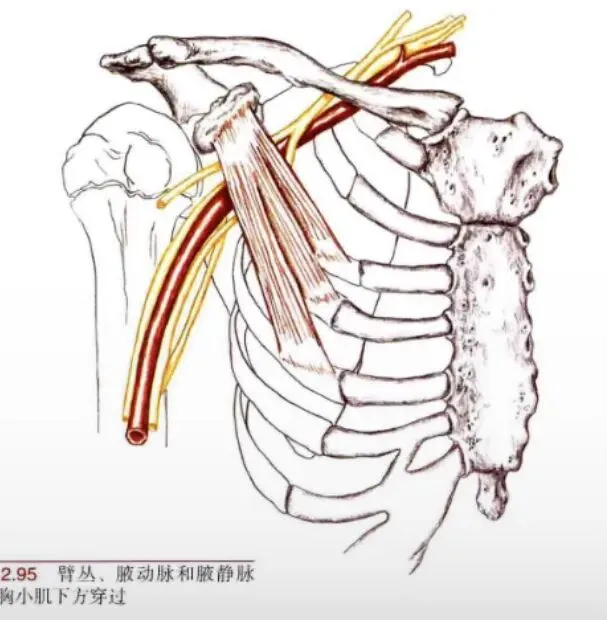 障碍被认为是导致胸小肌张力过高或过度挛缩的主要原因之一。臂丛神经血管束(C5~T1)和锁骨下动脉直接从胸小肌下方通过,故这块肌肉的持续收缩也可能导致胸廓出口综合征(TOS)。前锯肌