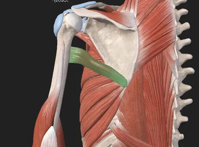 与肩袖肌的重要组成之一小圆肌相比,大圆肌是一块较大的圆形肌肉。该肌肉与背阔肌协同完成内收、后伸和内旋孟肱关节。