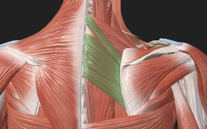 起点:小菱形肌,C7 和 T1 棘突。大菱形肌,T2~T5 棘突。