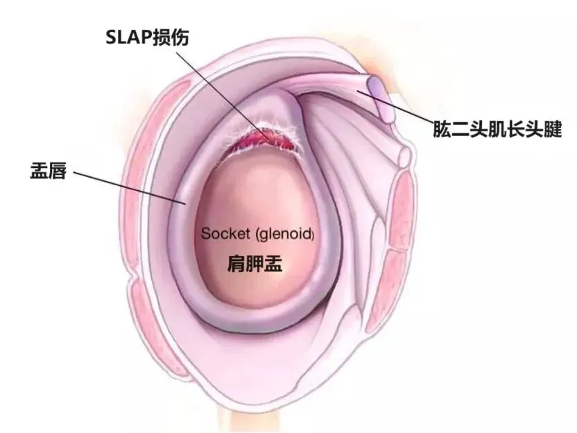 肱二头肌长头可能发生撕脱伤,因为它的肌腱附着于孟上结节,即孟唇的一部分。如果肌腱确实从孟唇部撕裂,则通常被称为 SLAP(肩胛上孟唇自前向后撕裂伤)损伤。