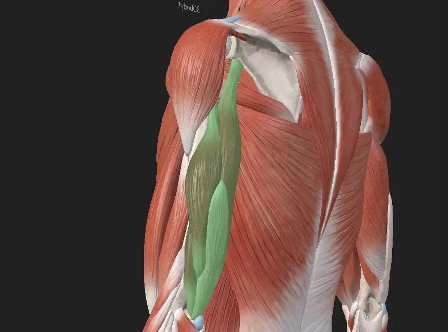 顾名思义, 三头肌有3个头,而其中长头对肩关节复合体的运动尤为重要。长头与同侧背阔肌和大圆肌协同工作,帮助内收和外展肩关节。肱三头肌腱与后囊相连,也是影响肩关节稳定性的重要机制。