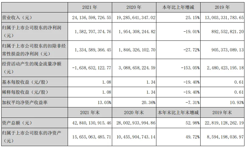 2019、2020、2021年度主要财务指标: