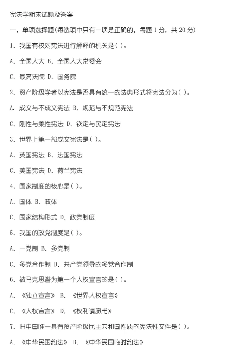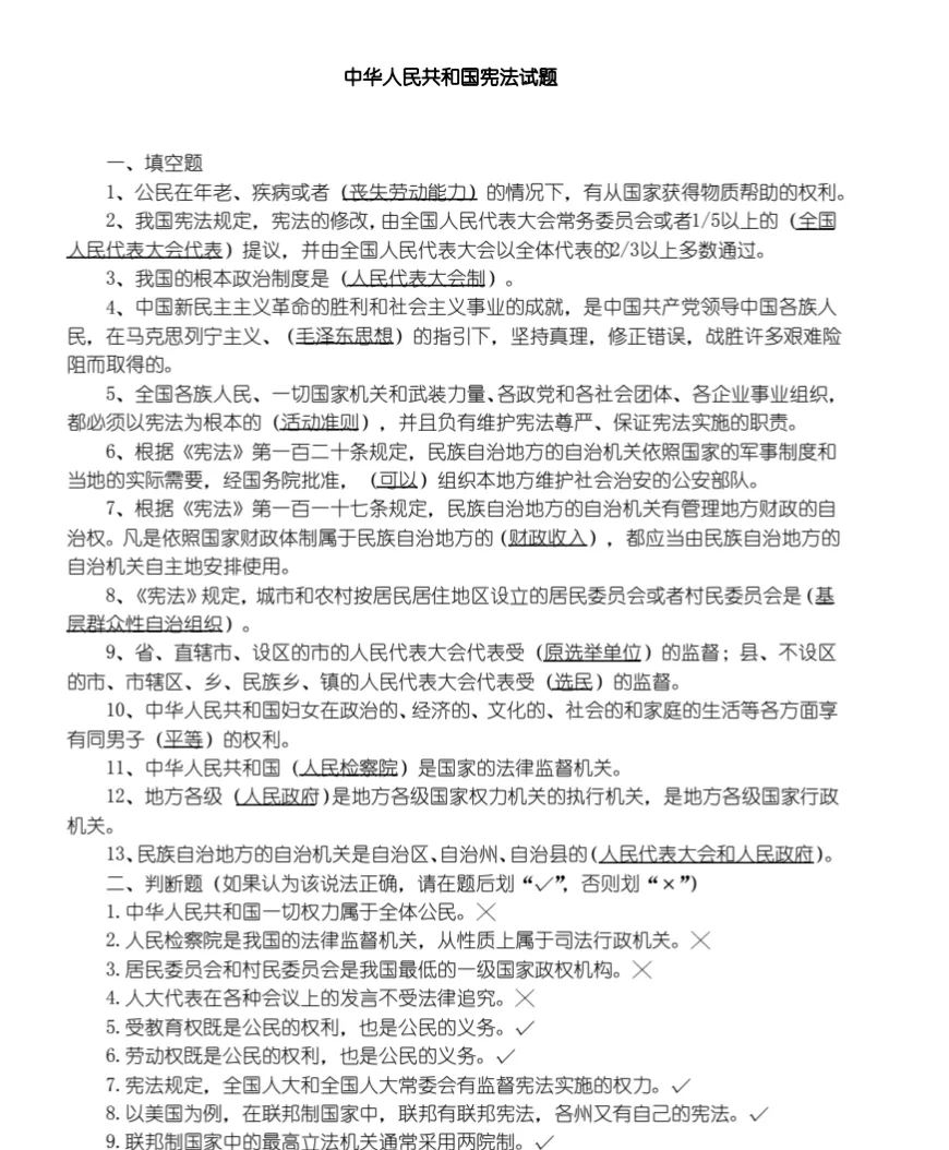 【期末必备】大学《中国宪法》学习笔记+期末复习题+模拟试题+考试复习要点+综合练习题及答案+题库,网盘免费下载