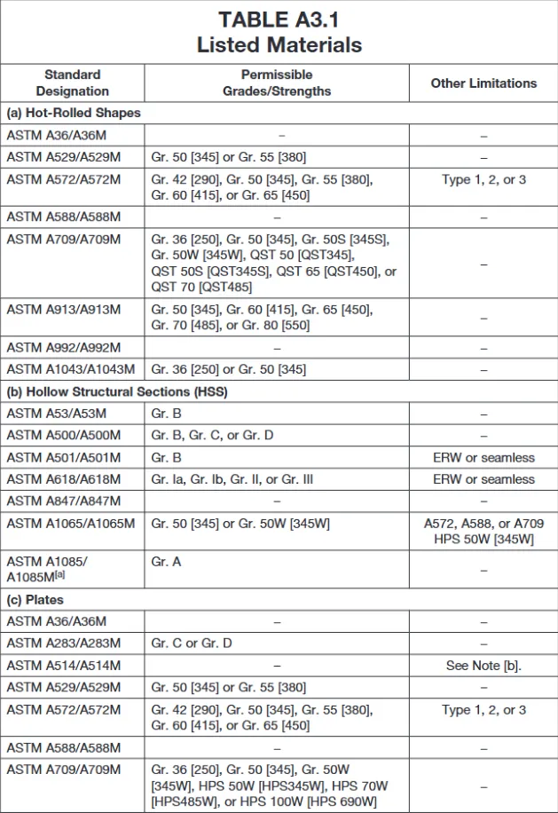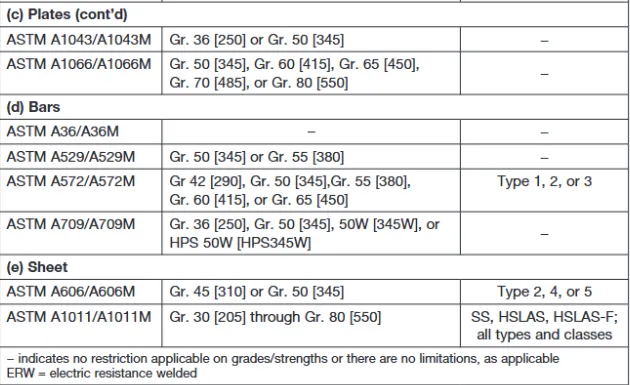3)美标钢结构常用材料类别?