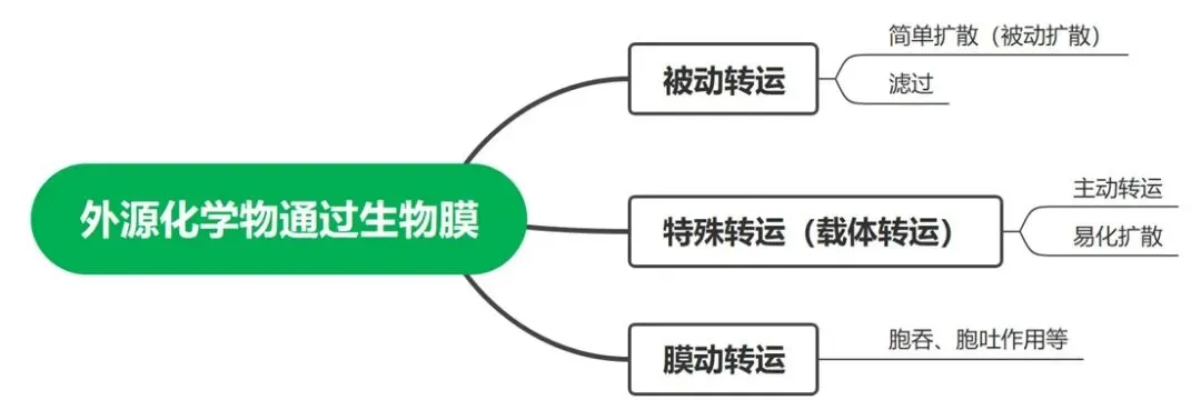 外源化学物通过生物膜的方式:被动转运、特殊转运和膜动转运