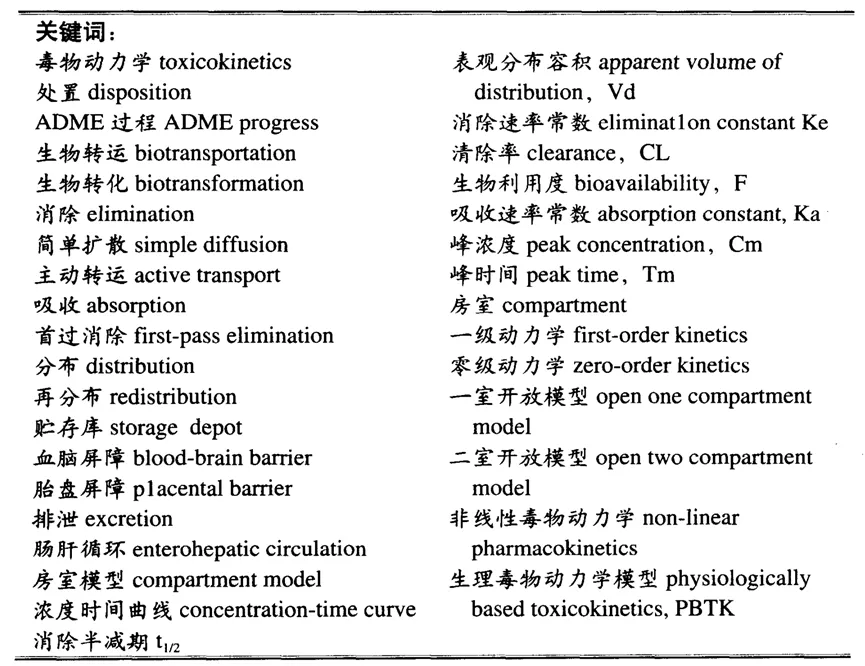 研究机体对外源化学物的作用(ADME过程)和靶器官中外源化学物或其活性代谢物的量。机体对外源化学物的处置可分成相互关联的吸收(absorption)、分布(distribution)、代谢(metabolism)和排泄(excretion)四个过程,又称ADME过程。其中吸收、分布和排泄具有共性,即化学毒物穿越生物膜的过程,其本身的结构和性质不发生变化,故统称为生物转运(biotransportation), 代谢称为生物转化(biotransformation)。代谢和排泄的过程又合称为消除(elimination)。