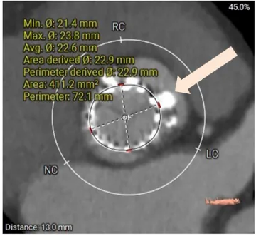 看位置:我们在测量的时候需要评估钙化和升主对瓣膜的推挤作用,来预测瓣膜在每个地方大概位置在哪里。