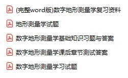 今天分享的资料是「0820-数字地形测量学」电子版+学习笔记+知识点总结+期末考试重点+复习资料+习题集及答案+名词解释+历年真题试卷及答案+题库及答案+复习重点+思考题及参考答案+公式总结+考试重点基础题+知识总结+高清PDF可打印+免费分享!