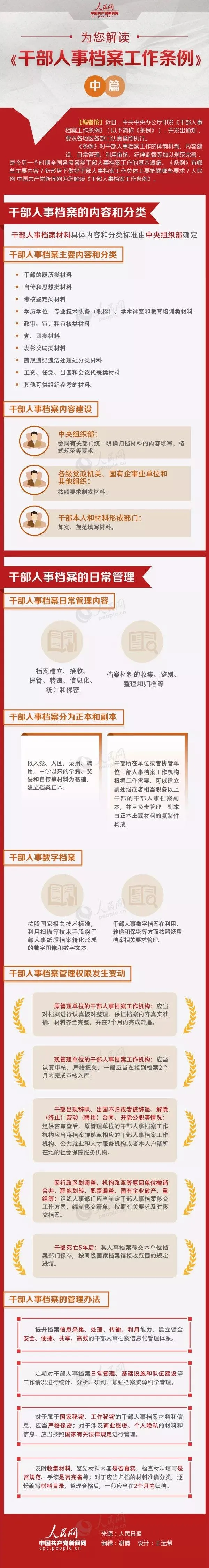 中共中央办公厅印发了《干部人事档案工作条例》,对于干部人事档案工作的体制机制、内容建设、日常管理、利用审核、纪律监督等加以规范完善,是今后一个时期全国各级各类干部人事档案工作的基本遵循。《条例》有哪些主要内容?新形势下做好干部人事档案工作总体上要把握哪些要求?一起来看图学习!