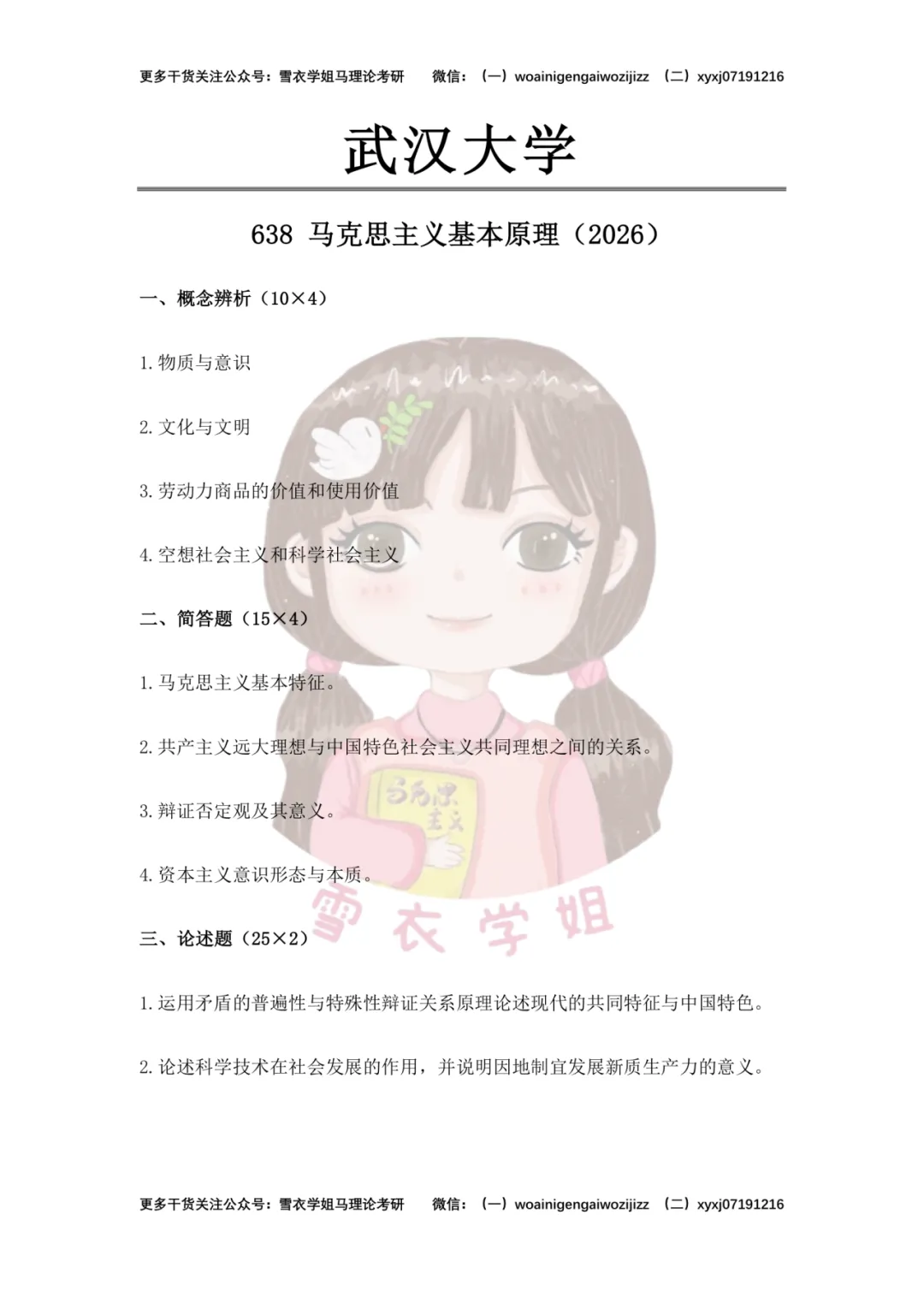 武汉大学的试题重在考察对理论本身的理解深度和逻辑论证能力。备考中不能满足于记忆结论,更要理解原理的推导过程和内在逻辑。
