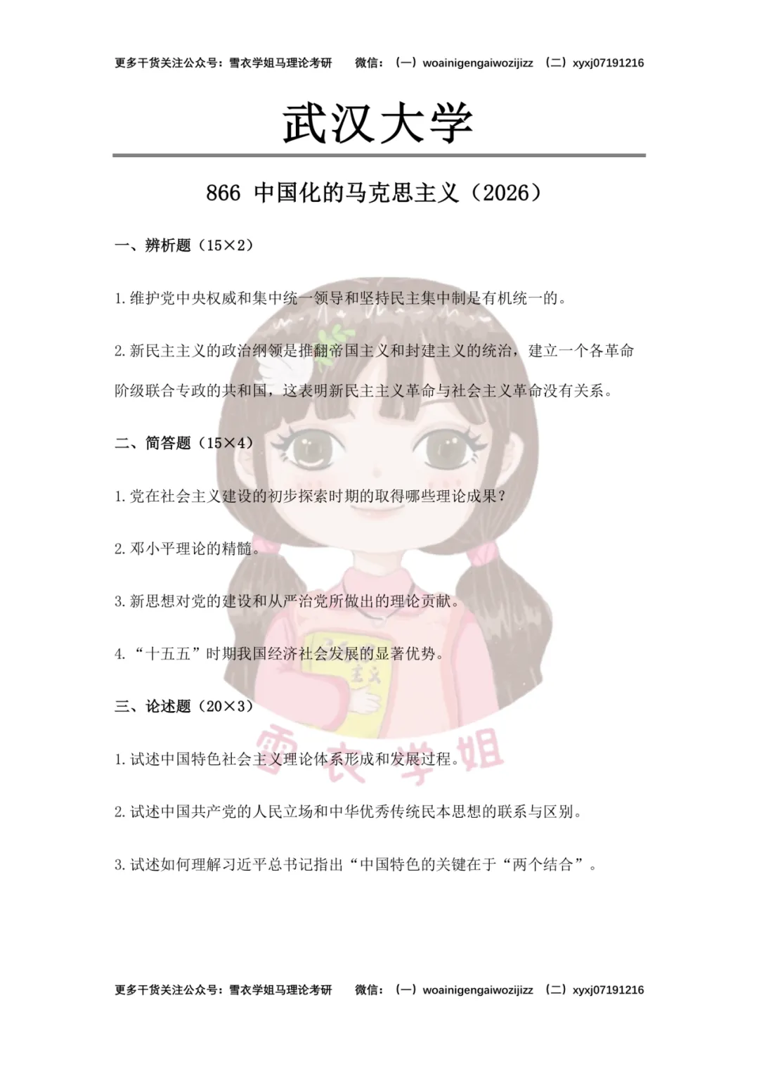 栏目初心是为27届备考马理论的宝子提前解锁各校最新真题、找准适配自己的目标院校,也为26届宝子的复试之路点亮指引方向的明灯。我们会精选各大高校最新真题,拆解为真题预览、押中的题、内容分析与答题思路、题目难度与备考策略四大板块,全方位拆解真题要点,让大家的备考之路少走弯路,思考更有深度,冲刺更有底气!
