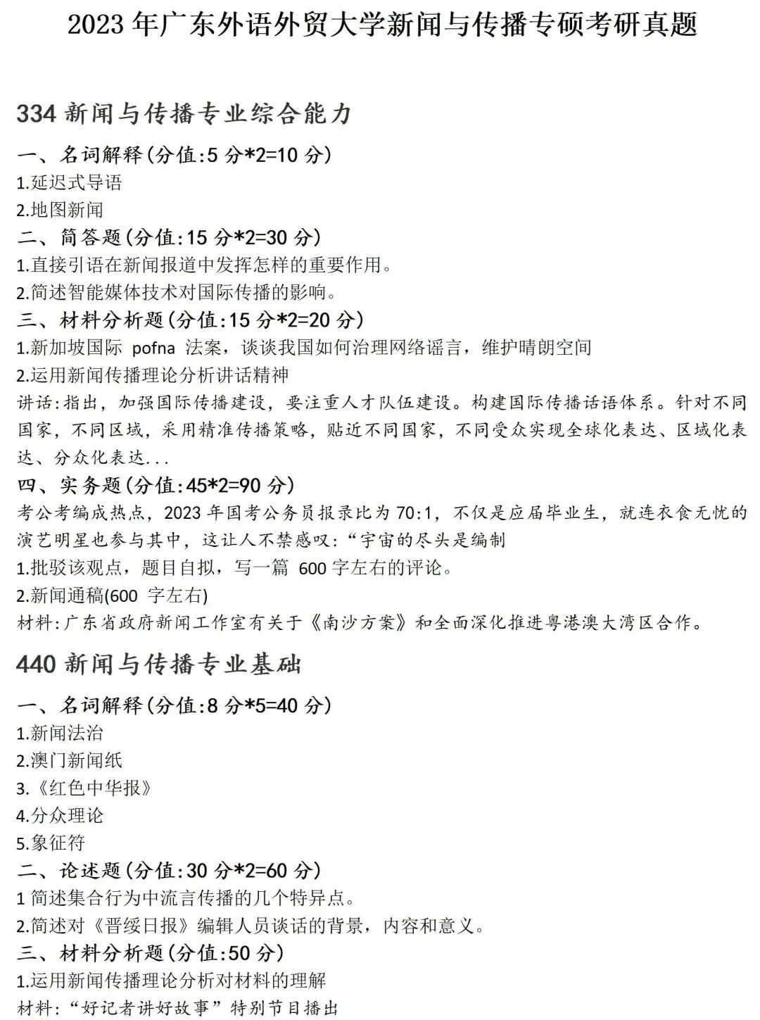 广东外语外贸大学新闻与传播考研真题2016-2025历年