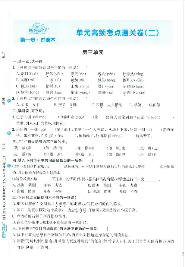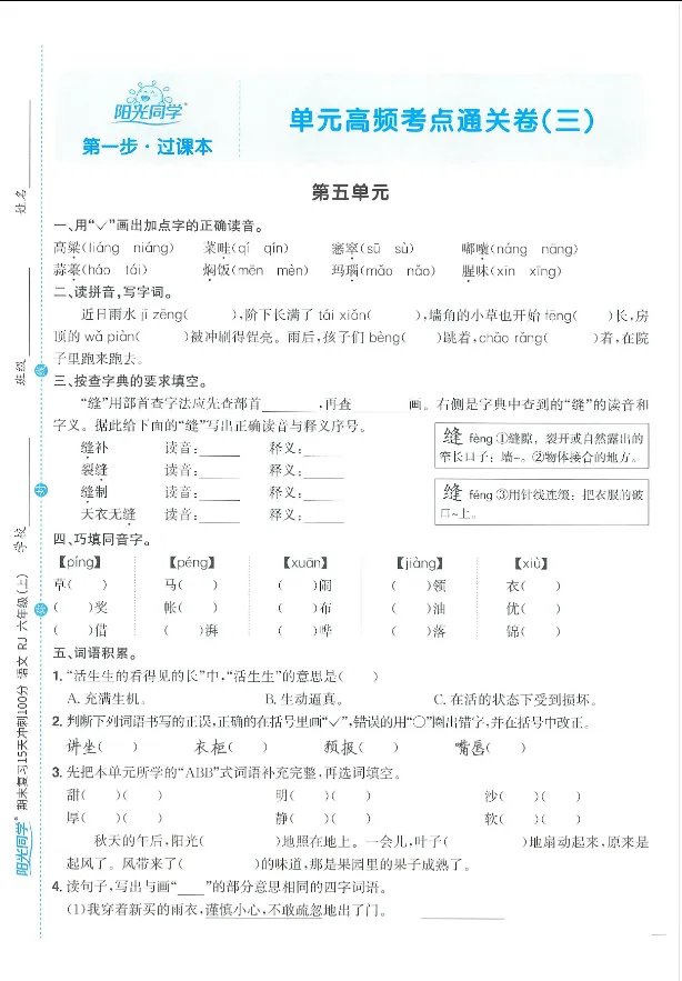 学习资料库-1-10【25秋阳光同学期末复习15天冲刺100分人教版语文6年级上册】