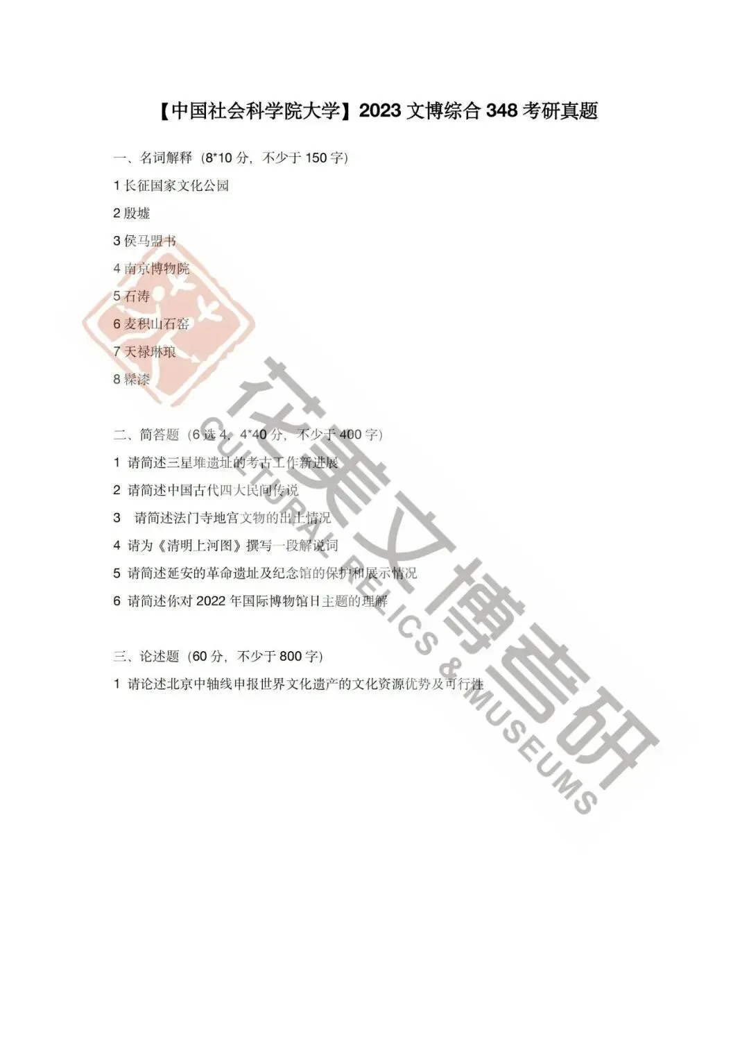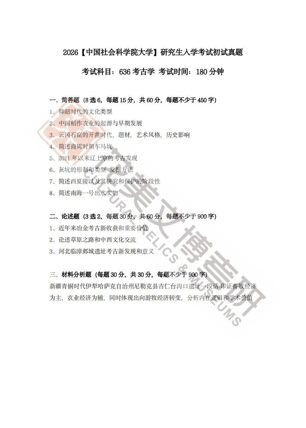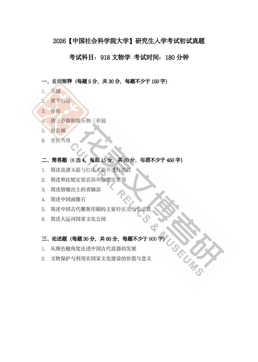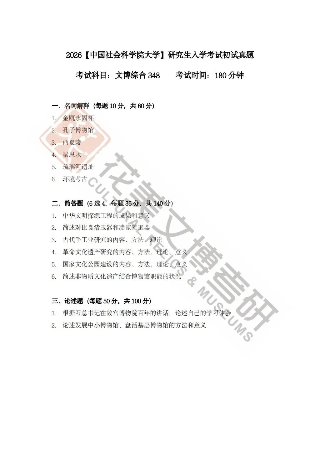 >【中国社会科学院大学】文博考研历年真题2012~2026