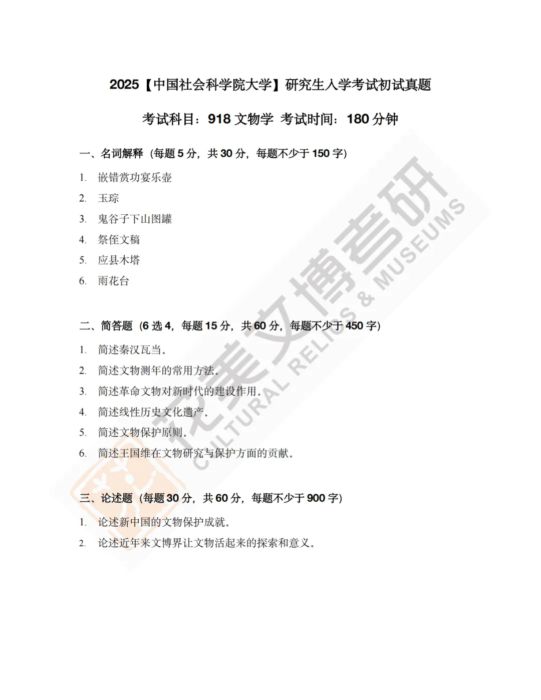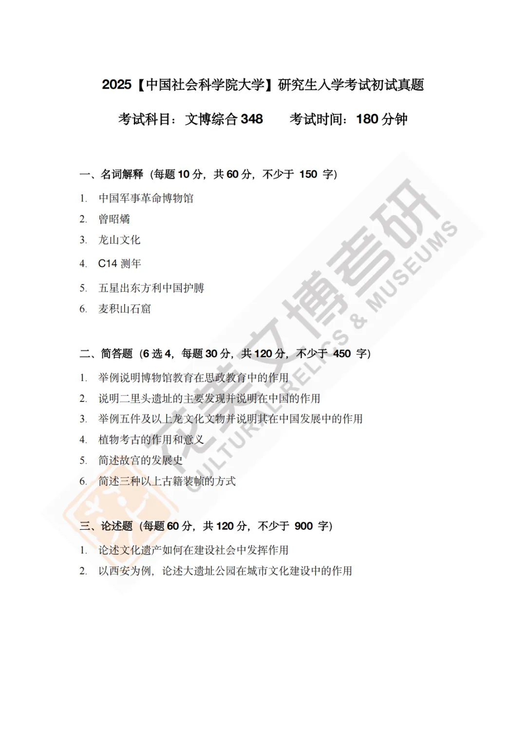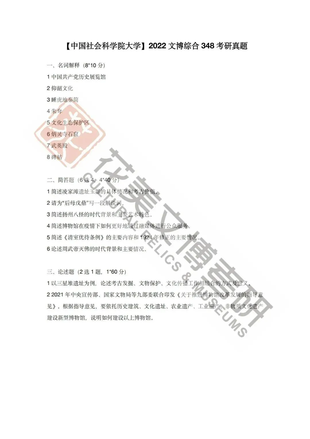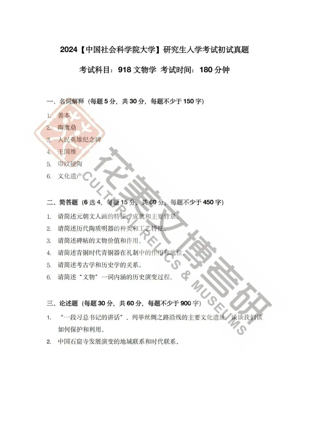 >【中国社会科学院大学】文博考研历年真题2012~2026