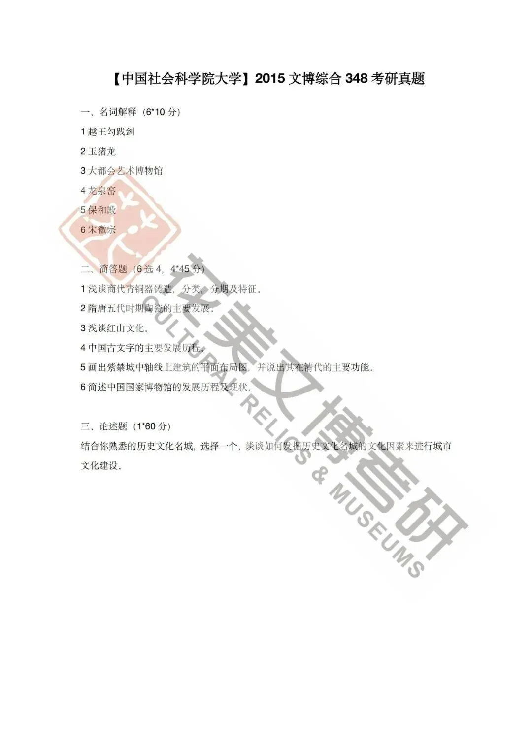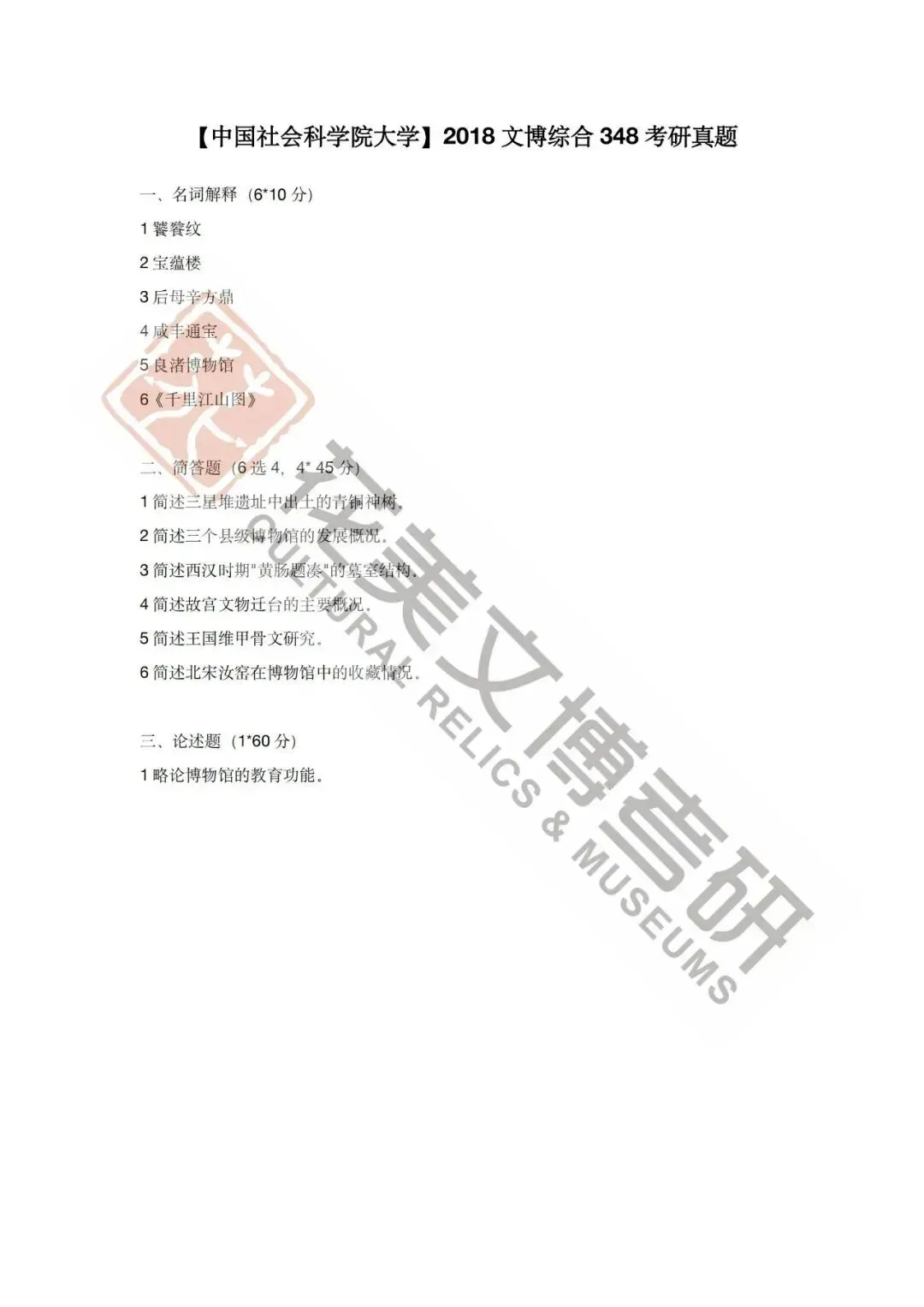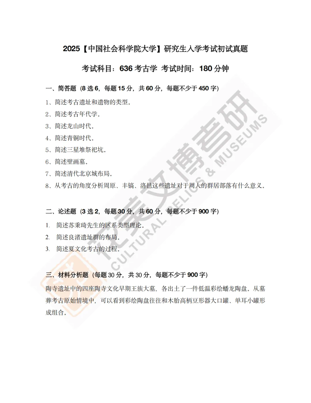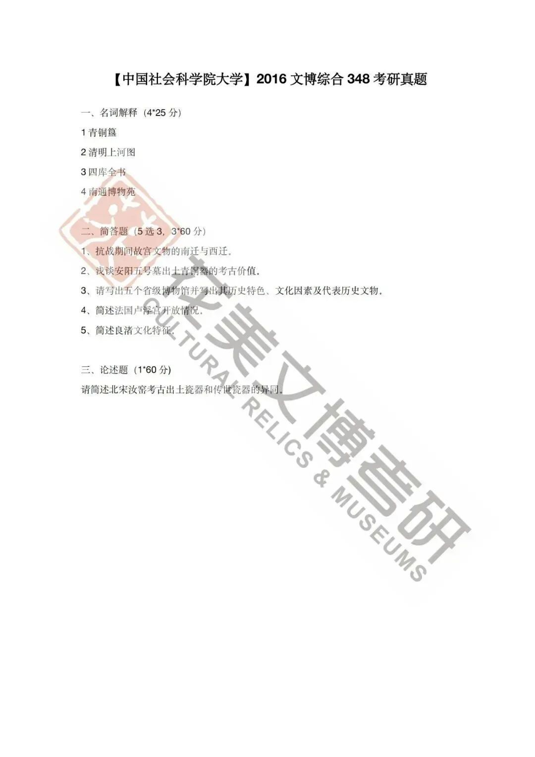 >【中国社会科学院大学】文博考研历年真题2012~2026