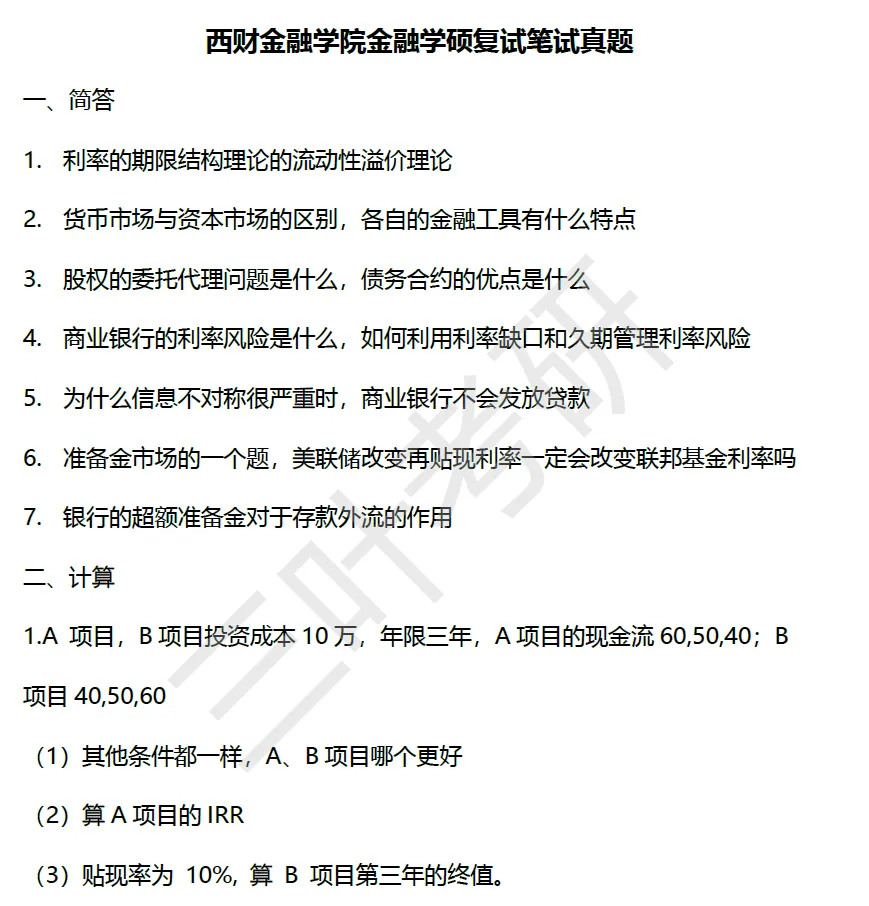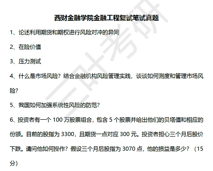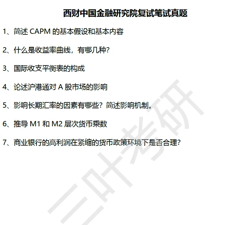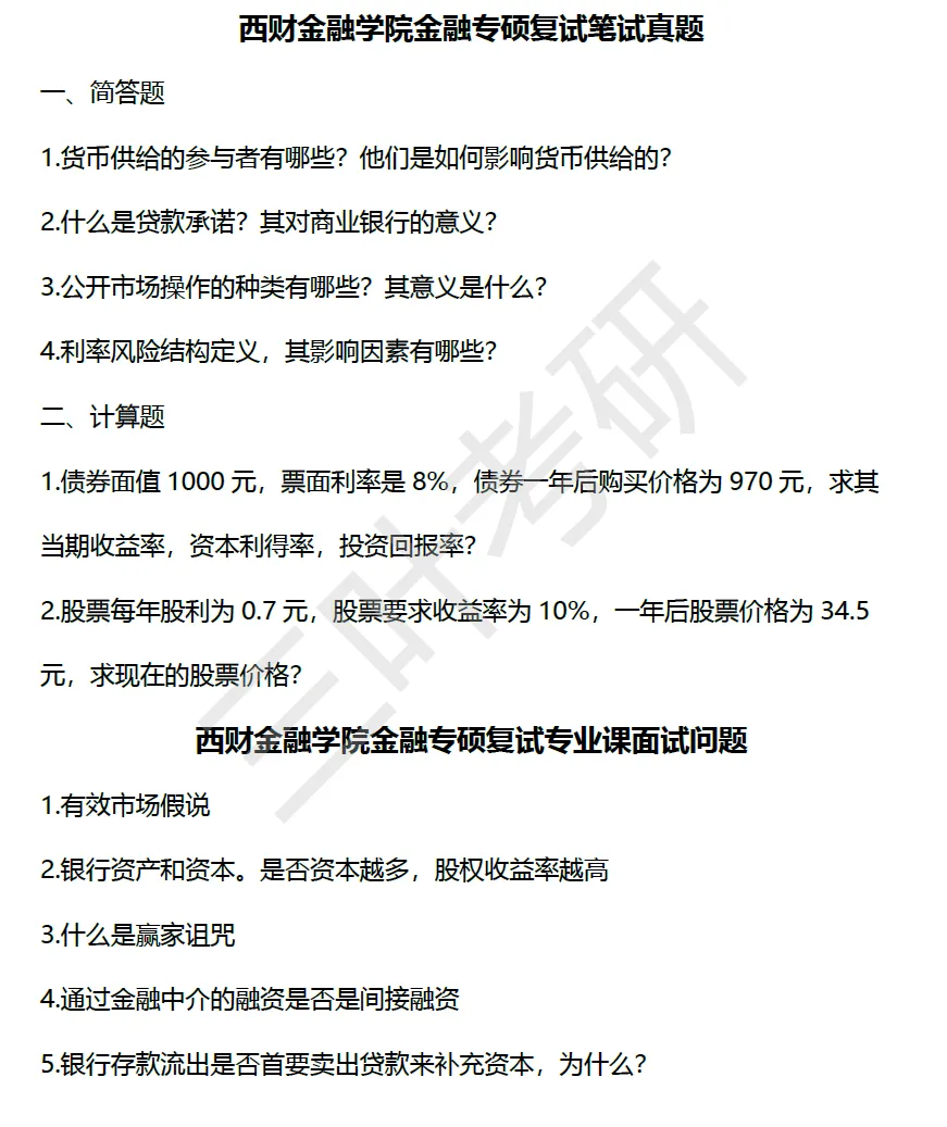 西财考研复试笔试真题什么样?——西财金融学院金融学硕复试笔试真题,西财金融专硕431复试笔试真题,西财金融学院金融工程复试笔试真题,中国金融研究院复试笔试真题。
