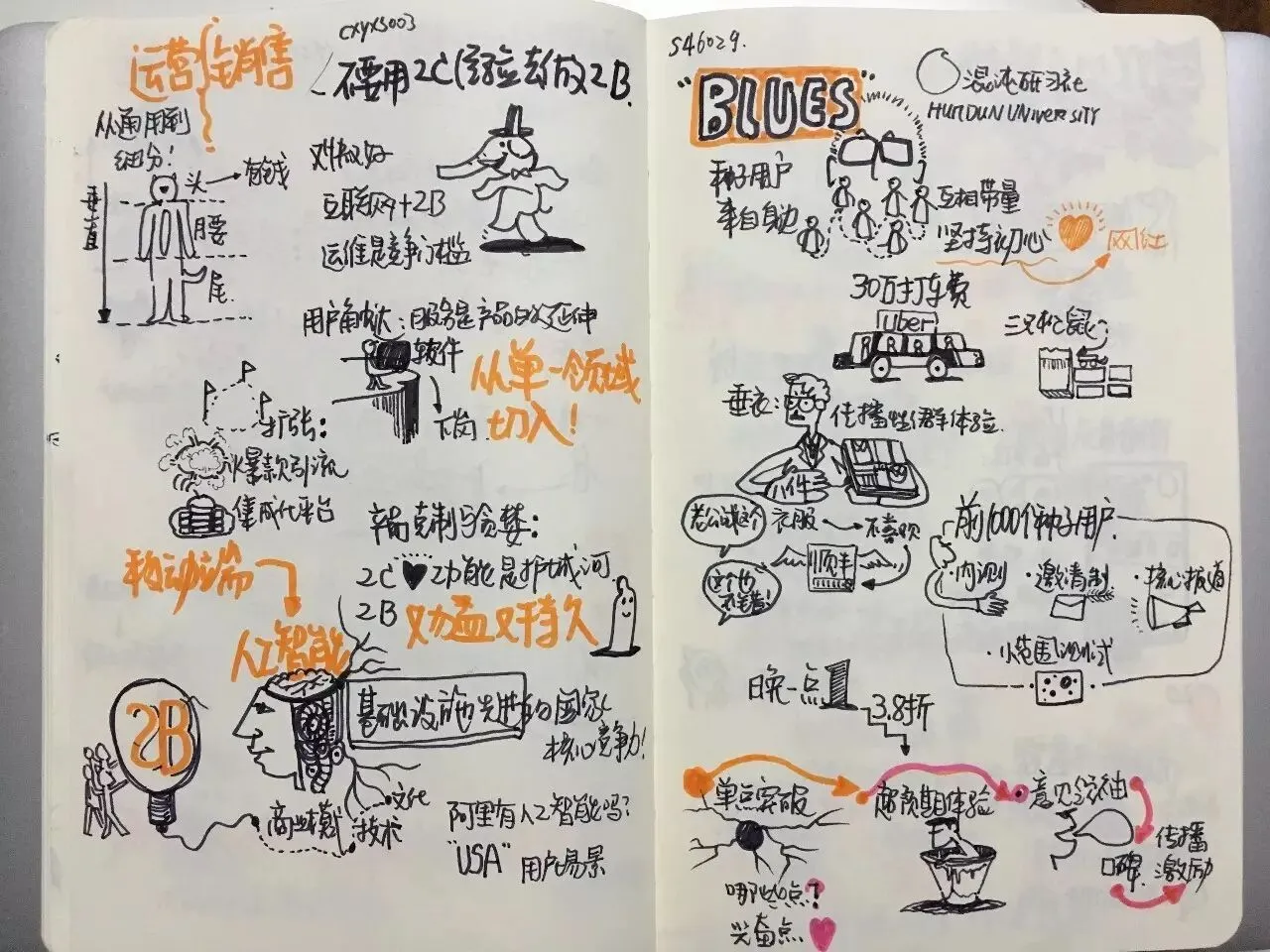 一位研习社的同学,一边听课,一边做出了这份叹为观止的手绘笔记,征求他的同意,BLUES将这份刷爆研习社朋友圈的课堂记录发出来,后面还有Blues整理的36条课堂笔记精华文字。