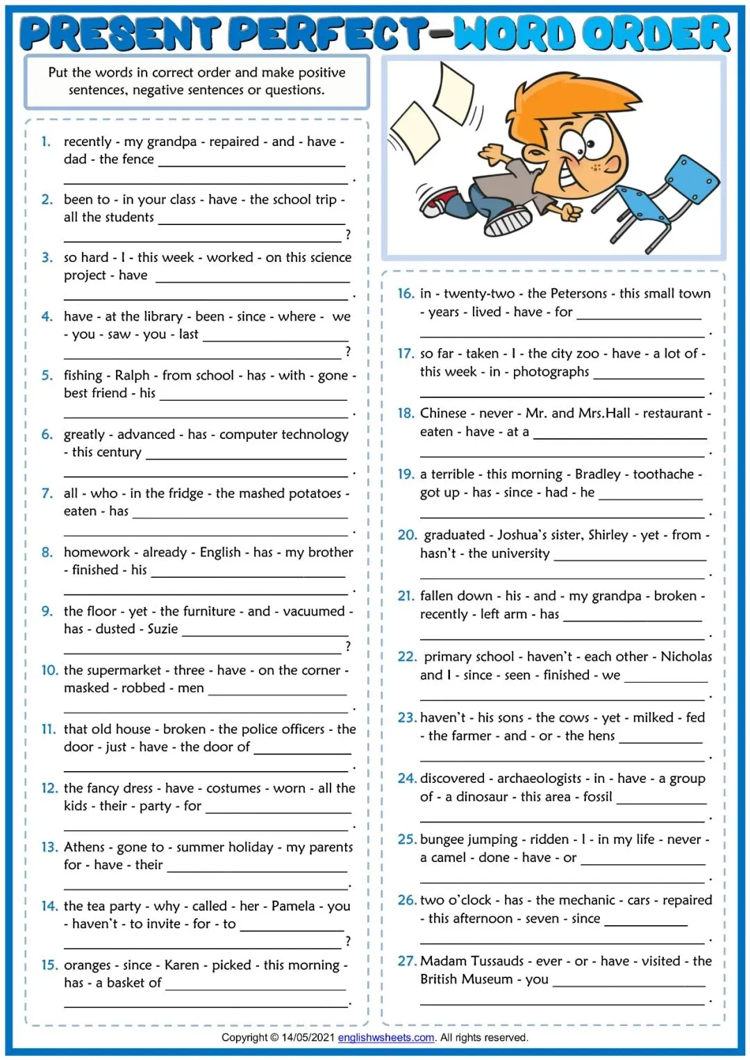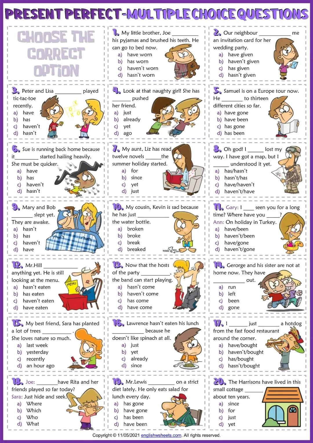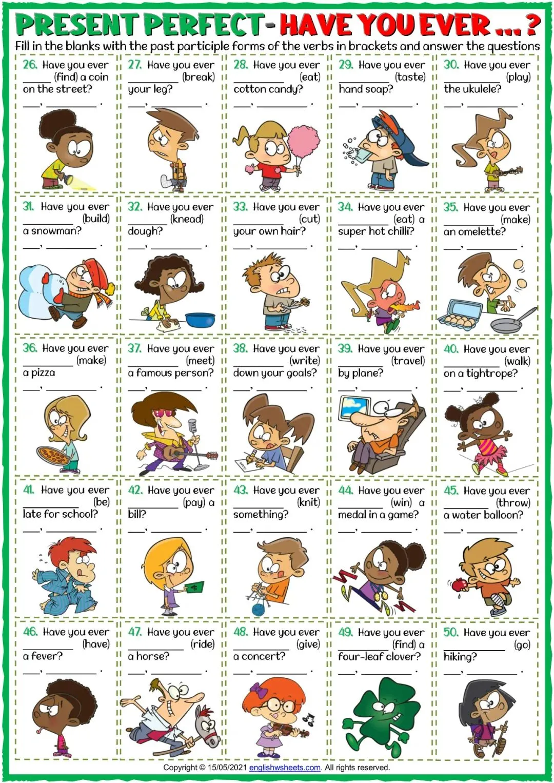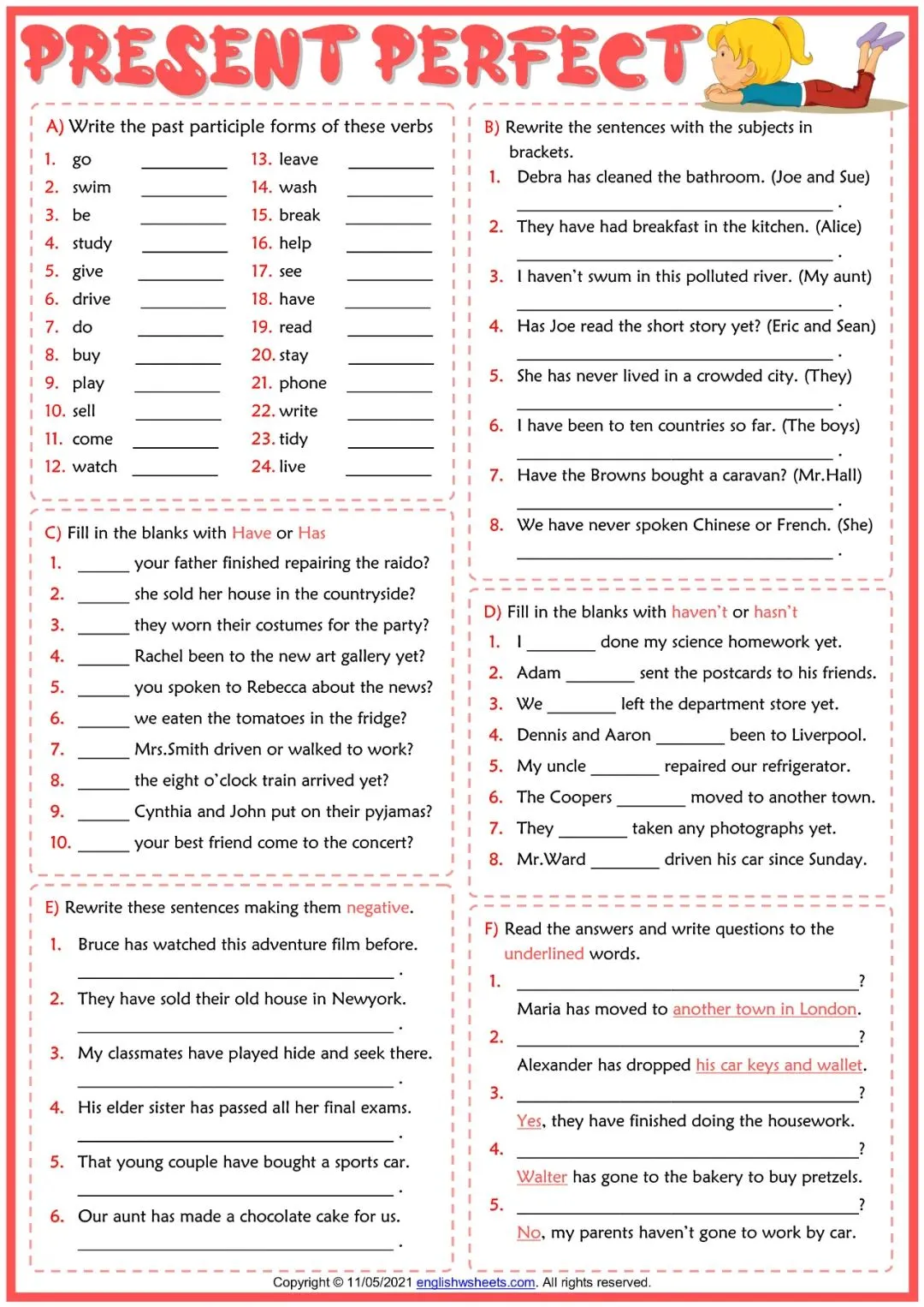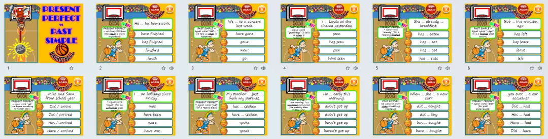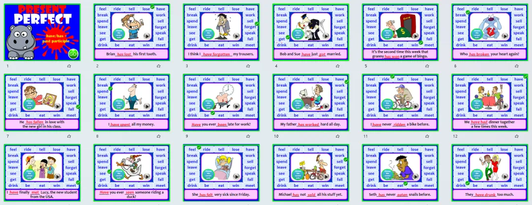 现在完成时英语学习素材,含6套动态课件和12套练习纸!