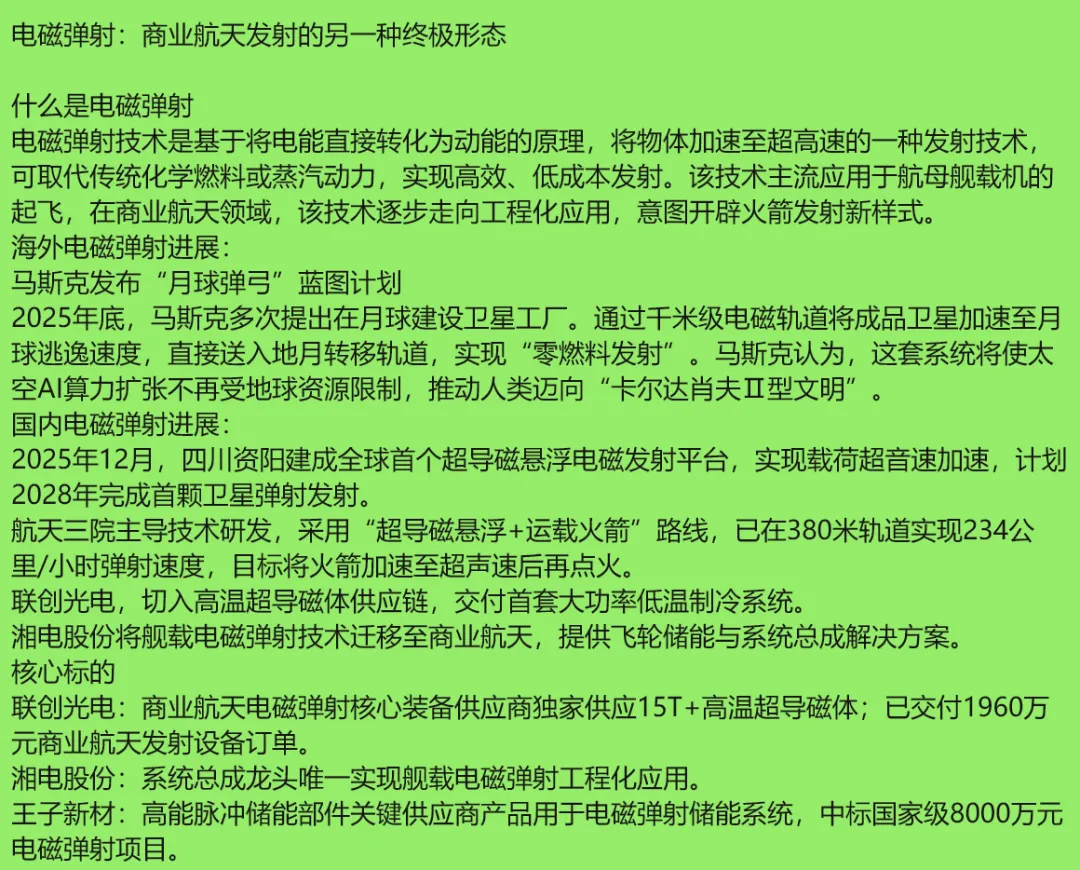 马斯克在25年年底在推特上构想了电磁发射的可能性。