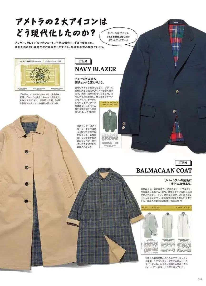 刚刚也提到,双面穿着的巴尔马肯大衣,是极为罕见的存在。《2nd》、《men's FUDGE》等知名杂志有讲解过市面常见的「单面卡其色版本」,但与「双面穿巴尔马肯大衣」相关的内容,Zach 这几天至少翻阅了上百本杂志,其内容页数总和,也就那么几页不到......