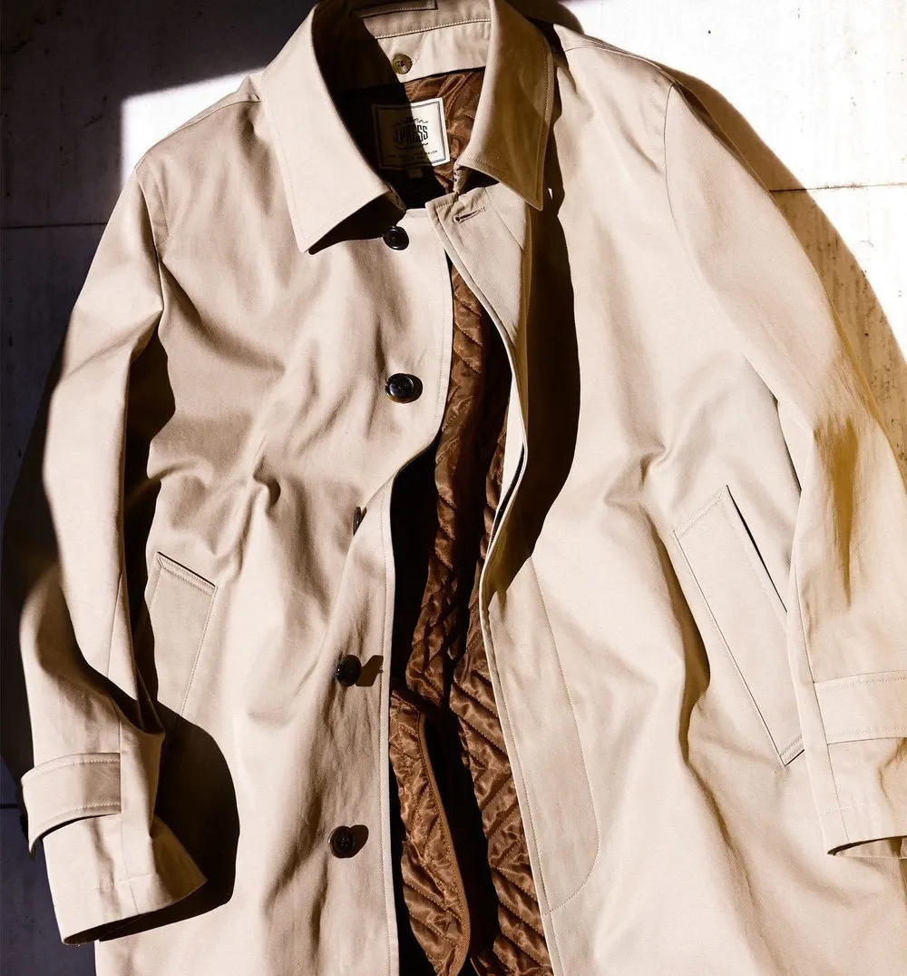 根据历史资料记载,J.PRESS 在 100 年前,就已把这件单品添加进了学校商店的产品目录内,同时还定下了「硬规则」,必须是一面采用棉质卡其色嘎巴甸防水面料,一面采用毛呢面料(一面防雨一面保暖,功能性直接拉满)。