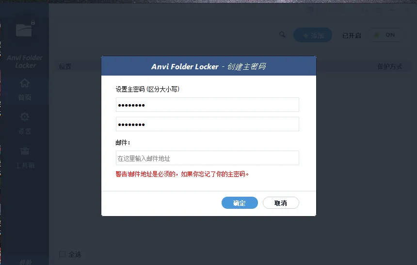 然后,打开软件。设置好密码,以及邮箱地址(找回密码用的,万一你忘记密码了呢)
