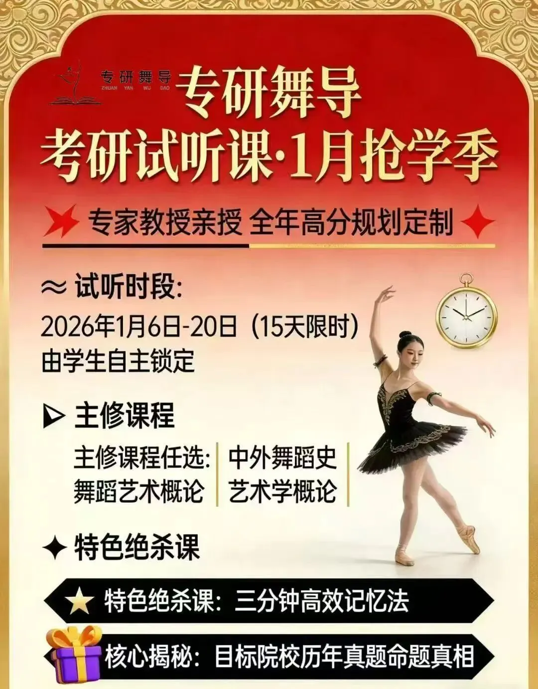 【专研舞导】 舞蹈考研•免费试听课•1月抢学季