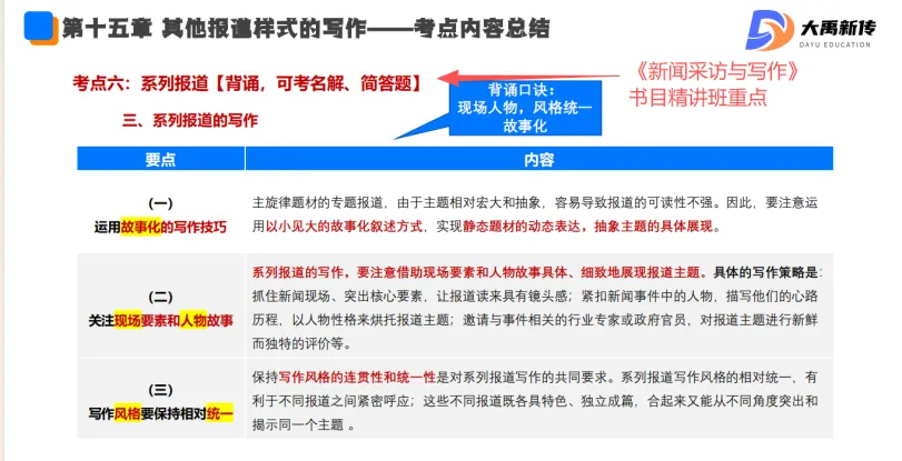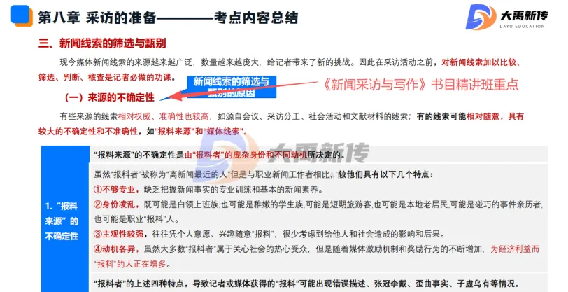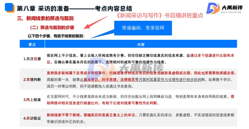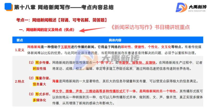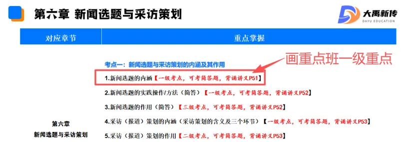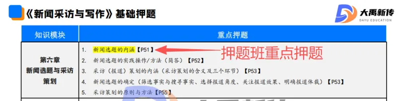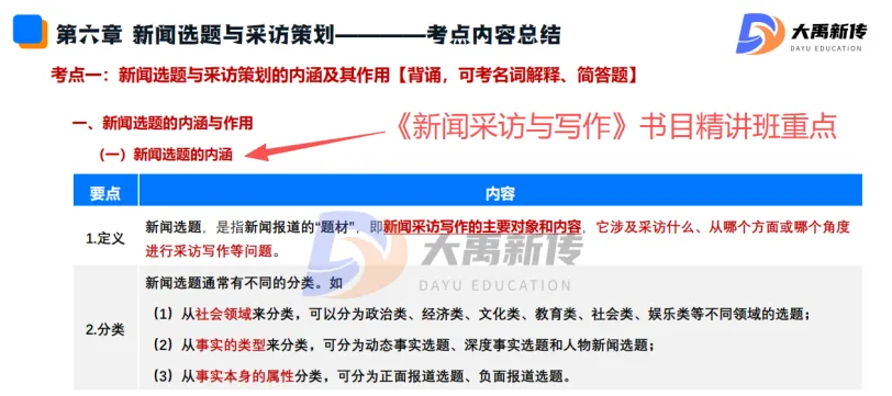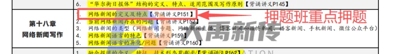 【题目出处:大禹新传《新闻采访与写作》书目精讲班重点、二轮划重点班重点考点、考前押题班重点、模拟考原题】