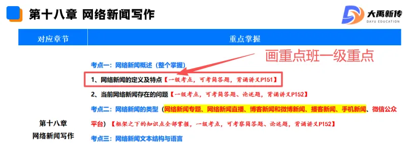 【题目出处:大禹新传《新闻采访与写作》书目精讲班重点、二轮划重点班重点考点、考前押题班重点】