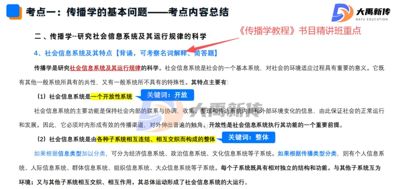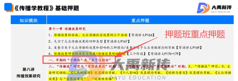 【题目出处:大禹新传《传播学教程》书目精讲班重点、二轮划重点班重点考点、考前押题班重点、模拟考原题】