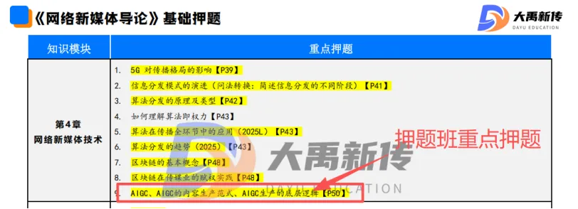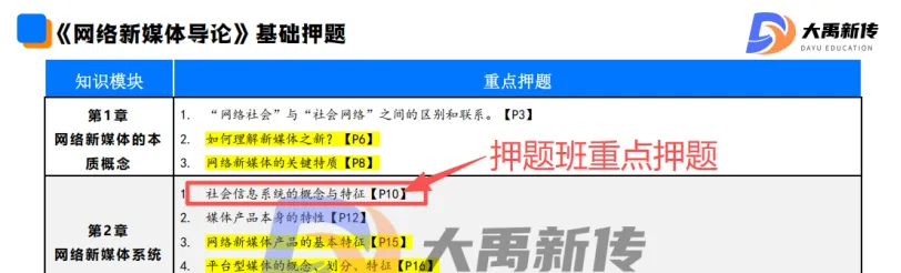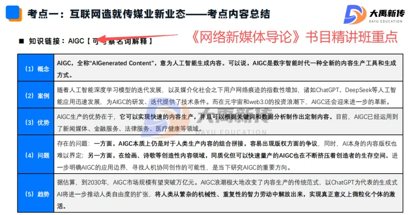 【题目出处:大禹新传《网络新媒体导论》书目精讲班重点、二轮划重点班重点考点、考前押题班重点押题、热点专题班重点原题、模拟考原题】