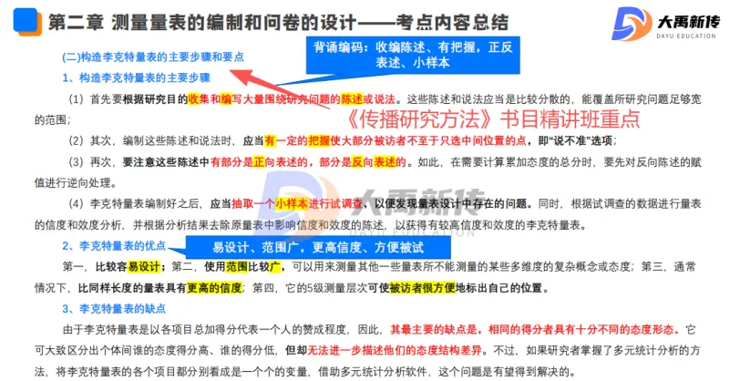 【题目出处:大禹新传《传播研究方法》书目精讲班重点、二轮划重点班重点考点、考前押题班重点、模拟考原题】