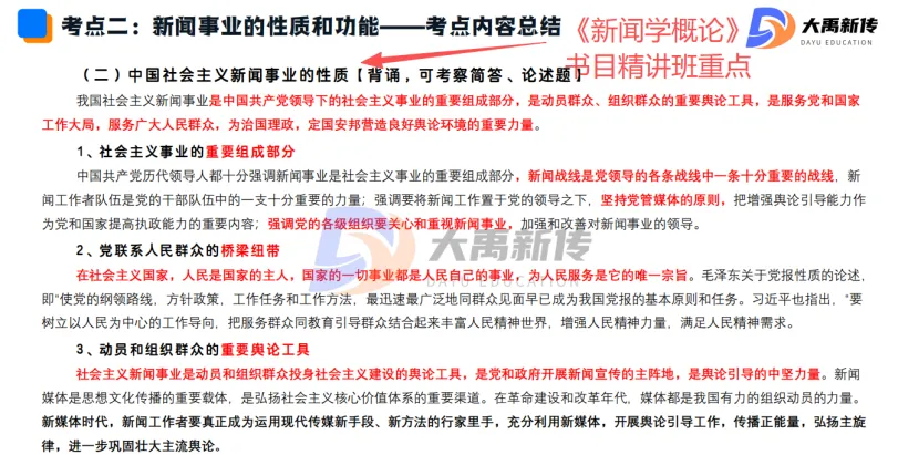 【题目出处:大禹新传《新闻学概论》书目精讲班重点、二轮划重点班重点考点、考前押题班重点】