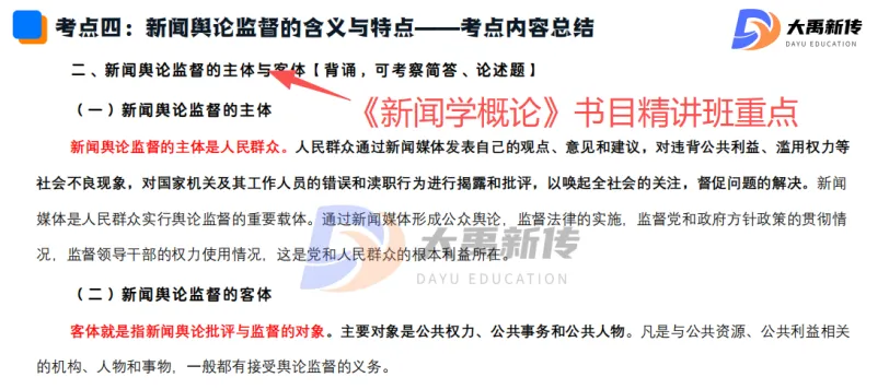 【题目出处:大禹新传《新闻学概论》书目精讲班重点、二轮划重点班重点考点、考前押题班重点、模拟考原题】
