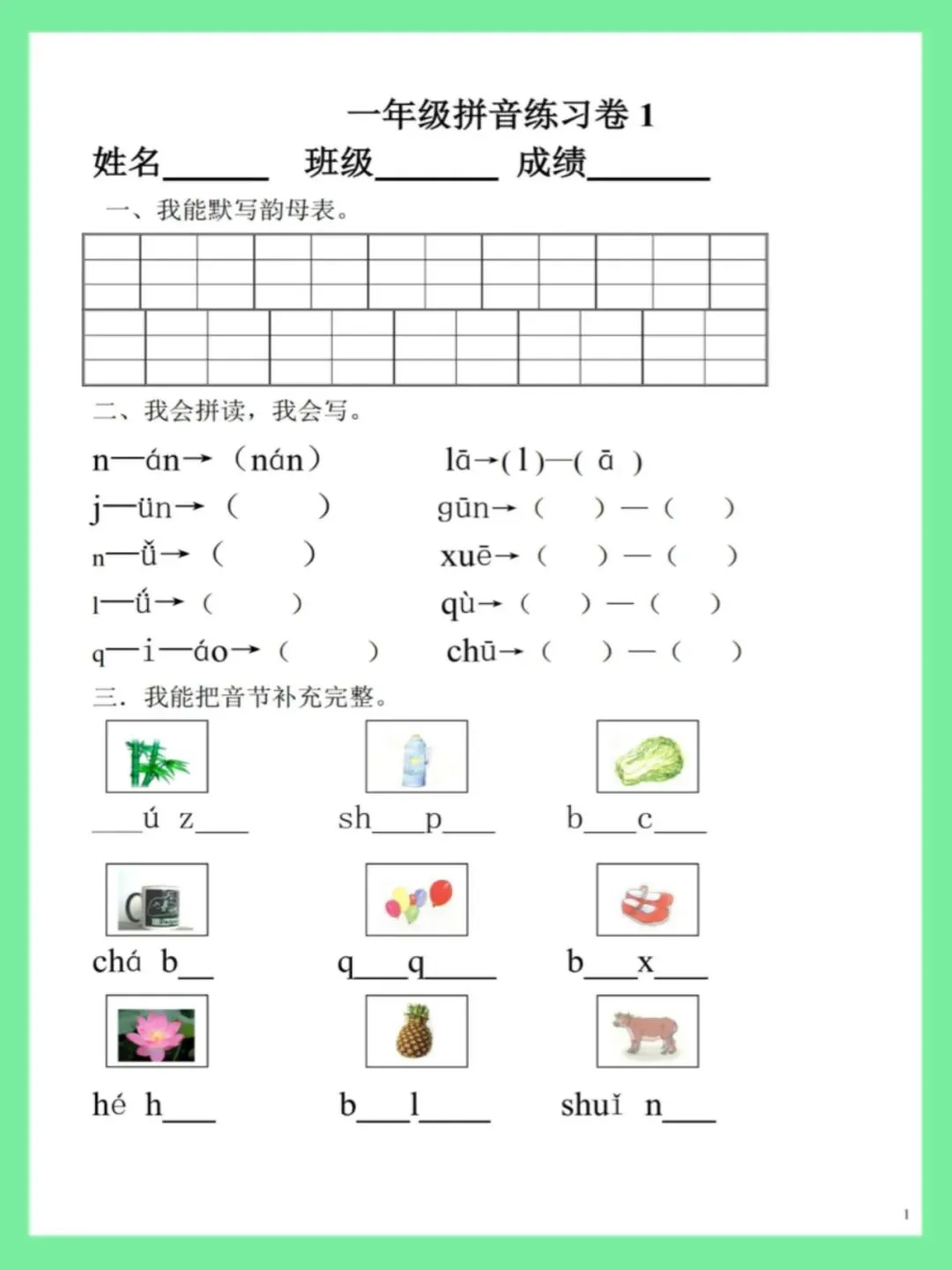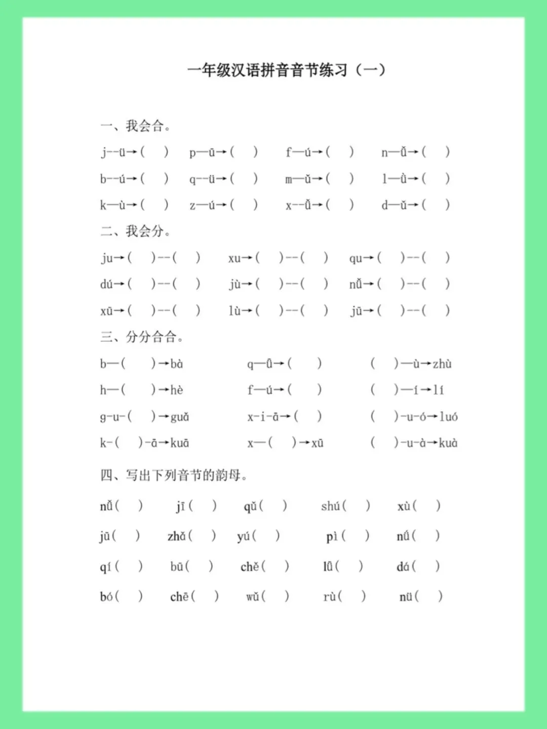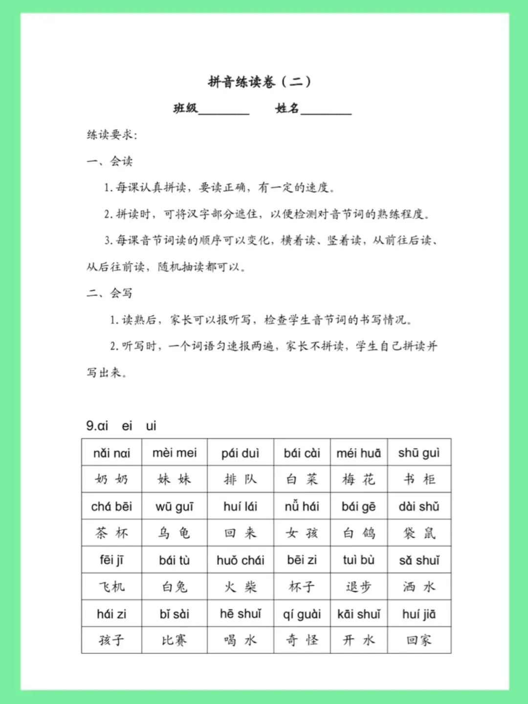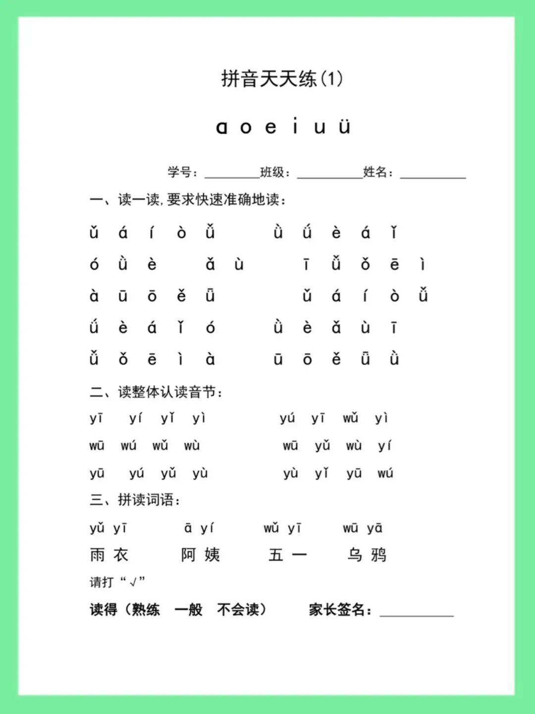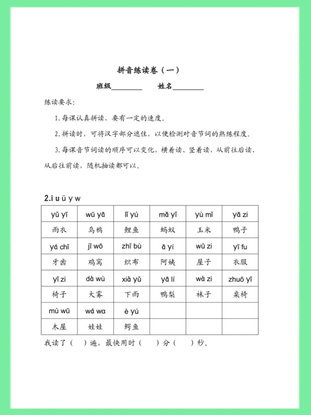拼音全套资源包括:拼音天天练电子版➕音频,练读卷,过关练习,音节拼读表,过关练习卷等等。