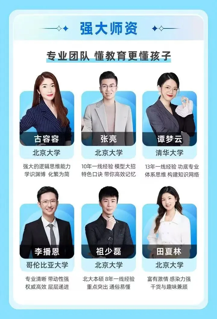 清北毕业老师在线直播授课、答疑,分享解题技巧;帮你搞清:小初高全科重难点、学习规划、解题技巧;致力于改善学习方法和提升学习水平!(师资一览:仅展示部分讲师)