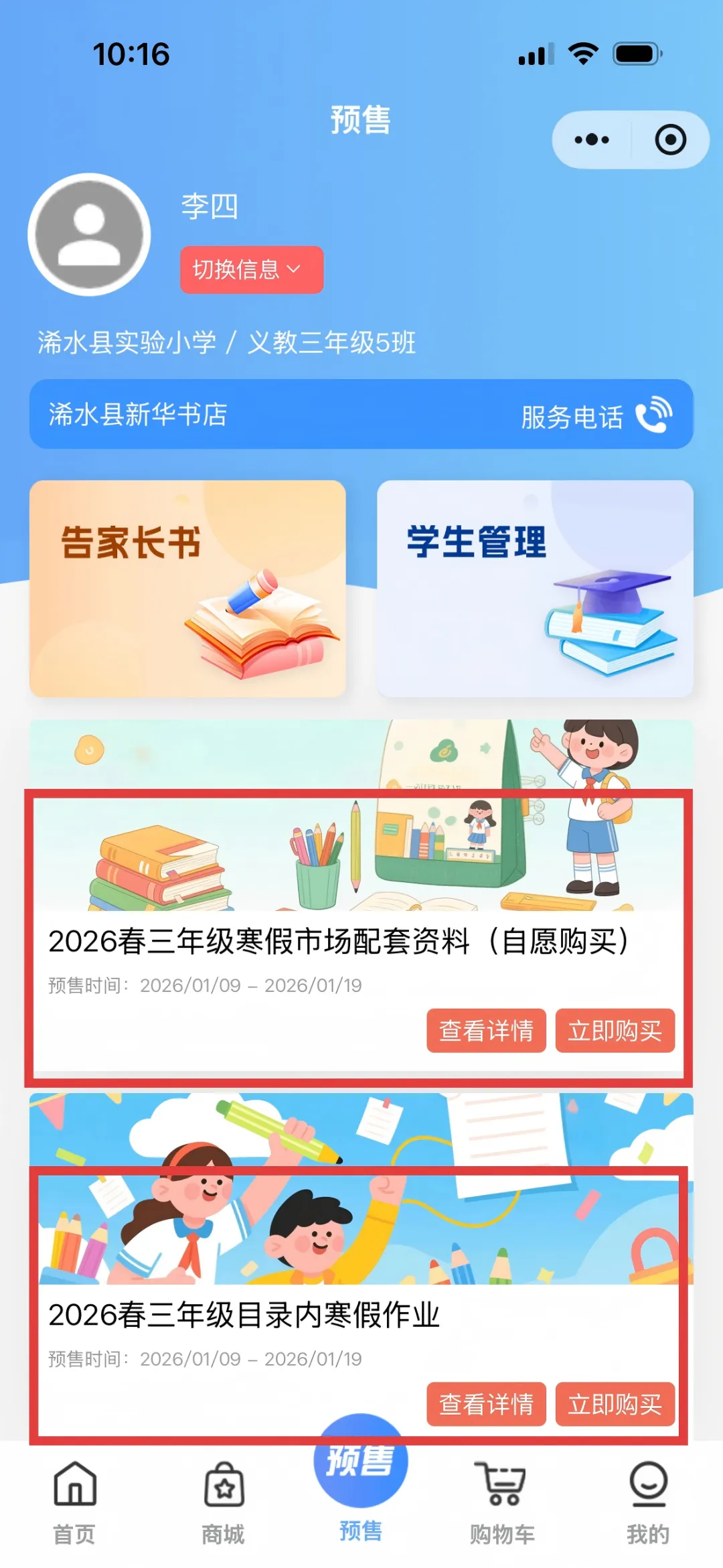 已购买的学习材料将会在预售时间截止后,统一发货到校、分发到班,请家长、同学们耐心等候。