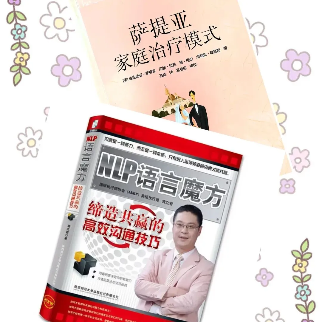 从家里翻出早就买过的两本书,决定再重新学习。重新翻这两本书,发现NLP早在十年前就看过两遍,但是那个时候对心理学了解不深刻,所以很多地方是看不懂的,更谈不上在实践中的运用了。如今再次翻看《NLP语言魔方》,发现这本书处处是宝藏。而《萨提亚家庭治疗模式》这本书则看得处处是感动,是恍然大悟,是对维吉尼亚.萨提亚女士理论与实践心悦诚服的赞叹与认同。