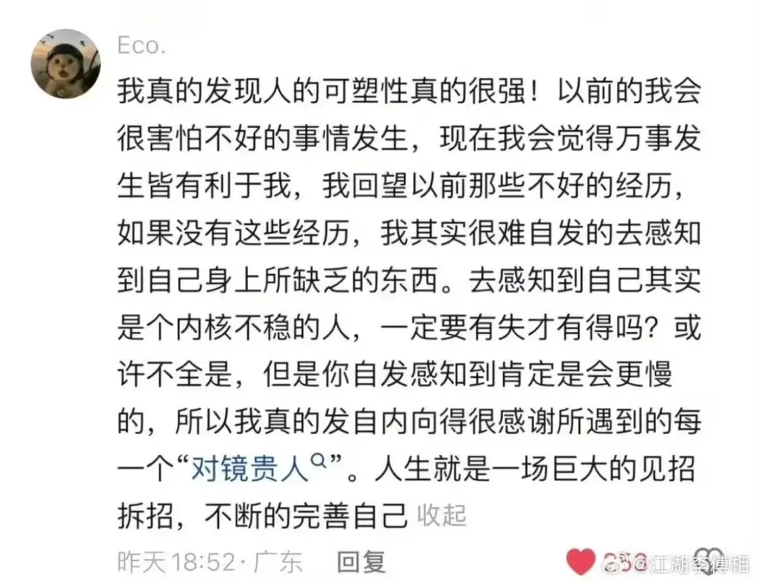 所以现在一是避免跟喜欢以弱者身份出现的人有太多连接,二是一定要明确边界感和责任范围。