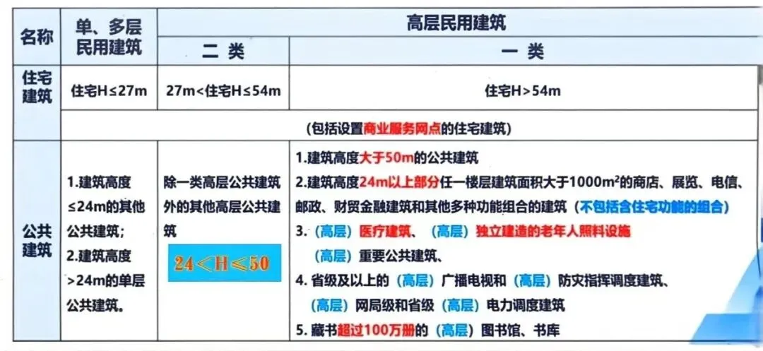 高层民用建筑根据其建筑高度、使用功能和楼层的建筑面积又可分为一类和二类。