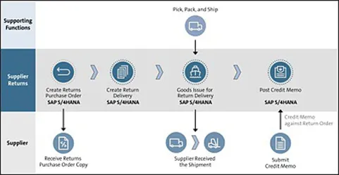 退货采购订单流程是供应链中的一个重要流程。它管理因各种原因发生的向供应商退货的情况;一些最常见的原因包括所收到的物料在质量检验时未达到质量标准、收到的库存过多、收到的货物包装有损坏等。SAP S/4HANA 提供了高级退货管理(ARM)功能来有效管理向供应商的退货。所有的文档和流程步骤都能自动且高效地进行管理,并且可以全面了解和控制端到端的退货流程。在 ARM 中,退货授权(RMA)编号起着至关重要的作用。它是退货交易的唯一标识符,也是卖方或制造商给予的退货授权。卖方会为客户提供 RMA 编号,并将其包含在为退货生成的运输标签中。收到退货产品后,卖方使用 RMA 编号来识别退回的货物并进行后续流程。通过这种方式,RMA 编号能更好地跟踪和了解退货产品的情况。下图展示了退货采购订单流程。让我们来探讨一下关键的流程步骤:通常情况下,买方会使用为高级退货管理激活的特定文档类型,为要退还给供应商的物料创建退货采购订单。与库存转储订单类似,发货数据将在项目层面自动填充,以方便创建退货发货( outbound )。在抬头层面,会自动显示“退货”标签,如果根据业务伙伴的设置这是必填项,则可以维护供应商的 RMA 代码。下图展示了使用事务代码 ME21N 创建退货采购订单的过程。选择退货文档类型后,退货采购订单项目会自动设置“退货项目”指示符。使用事务代码 VL10B,参照退货采购订单行项目层面的发货数据来创建退货发货单。最佳实践是使用批处理作业(后台处理)自动创建退货发货单( outbound )。退货发货单便于将物料从退货采购订单项目中指定的发货工厂发出。在库存管理中,会参照外向发货单对物料进行拣配和包装。对退货物料进行拣配和包装后,将从发货工厂进行发货过账。在库存管理中更新发出库存的数量和价值时,会更新物料凭证和会计凭证以记录货物移动情况。移动类型在确定库存移动类型和发货过账方面起着重要作用。移动类型 161 用于供应商退货发货的发货过账。供应商会通过电子邮件(纸质发票)、电子数据交换(EDI)或通过 SAP 业务网络以电子方式参照退货采购订单向买方发送贷项凭证。如果通过电子邮件、邮件或传真收到供应商贷项凭证,采购组织的应付账款部门将在 SAP S/4HANA 系统中使用事务代码 MIRO 手动过账。如果从供应商处以电子方式收到贷项凭证,则会自动过账并进行对账。一旦贷项凭证在系统中完全对账并过账,下一次计划付款运行将提取此已完全对账的贷项凭证并进行处理。你若喜欢,点个❤️谢先👇