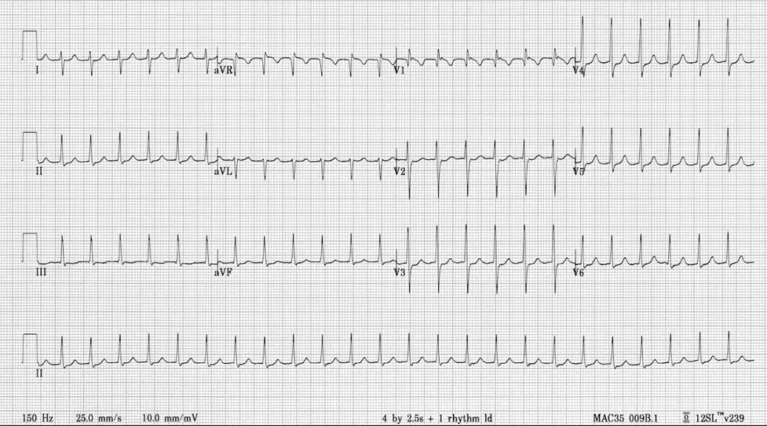 · 基本节律:规则的窄QRS波心动过速(QRS波通常<120 ms)。心率常在140-280次/分。