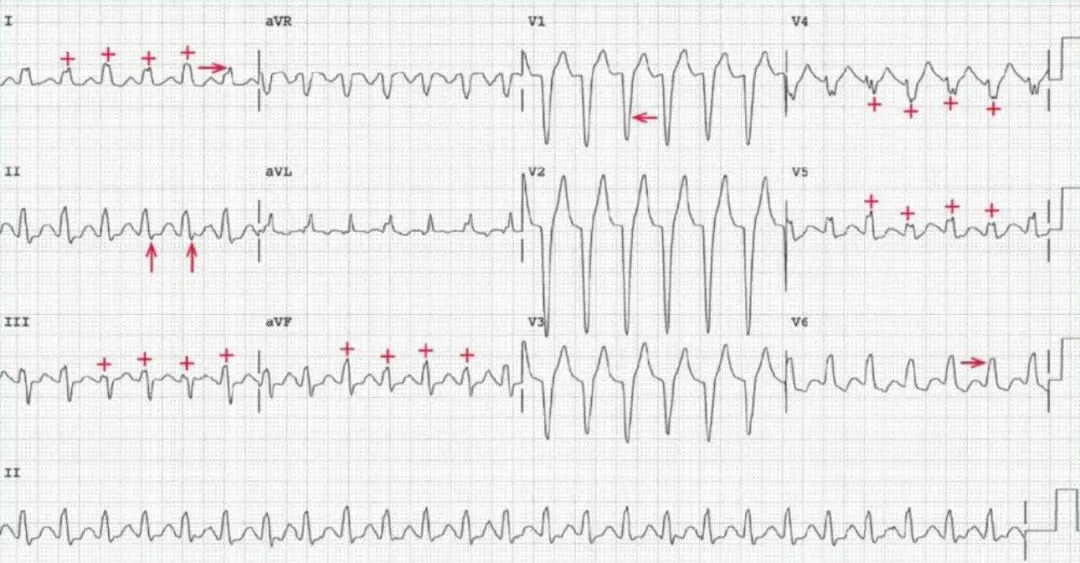 · 心动过速伴室内差异性传导时(QRS波群变宽),误诊为室性心动过速。