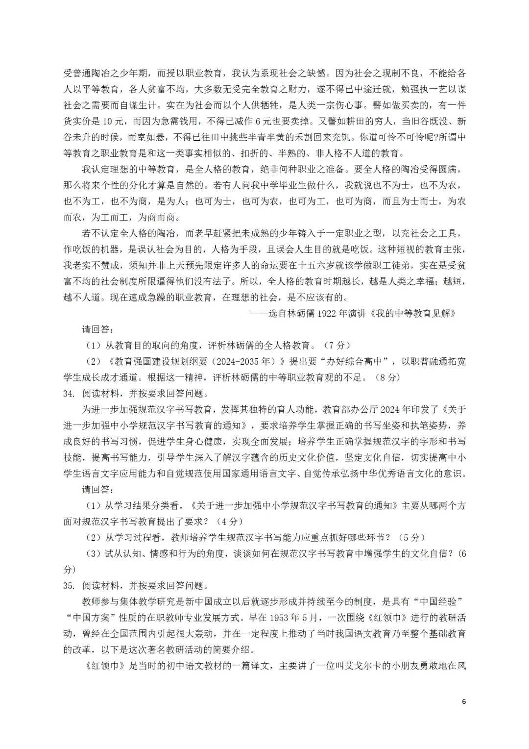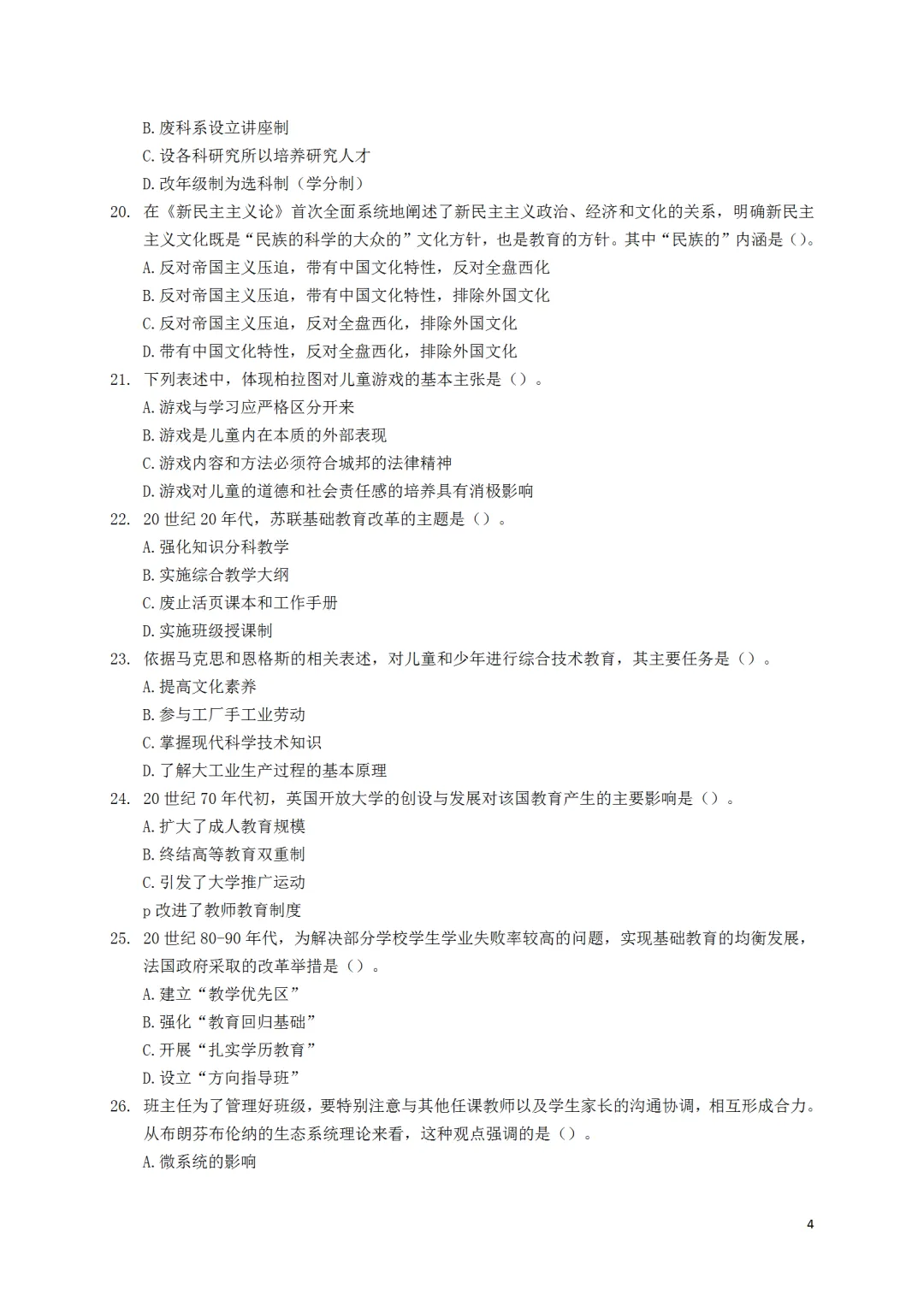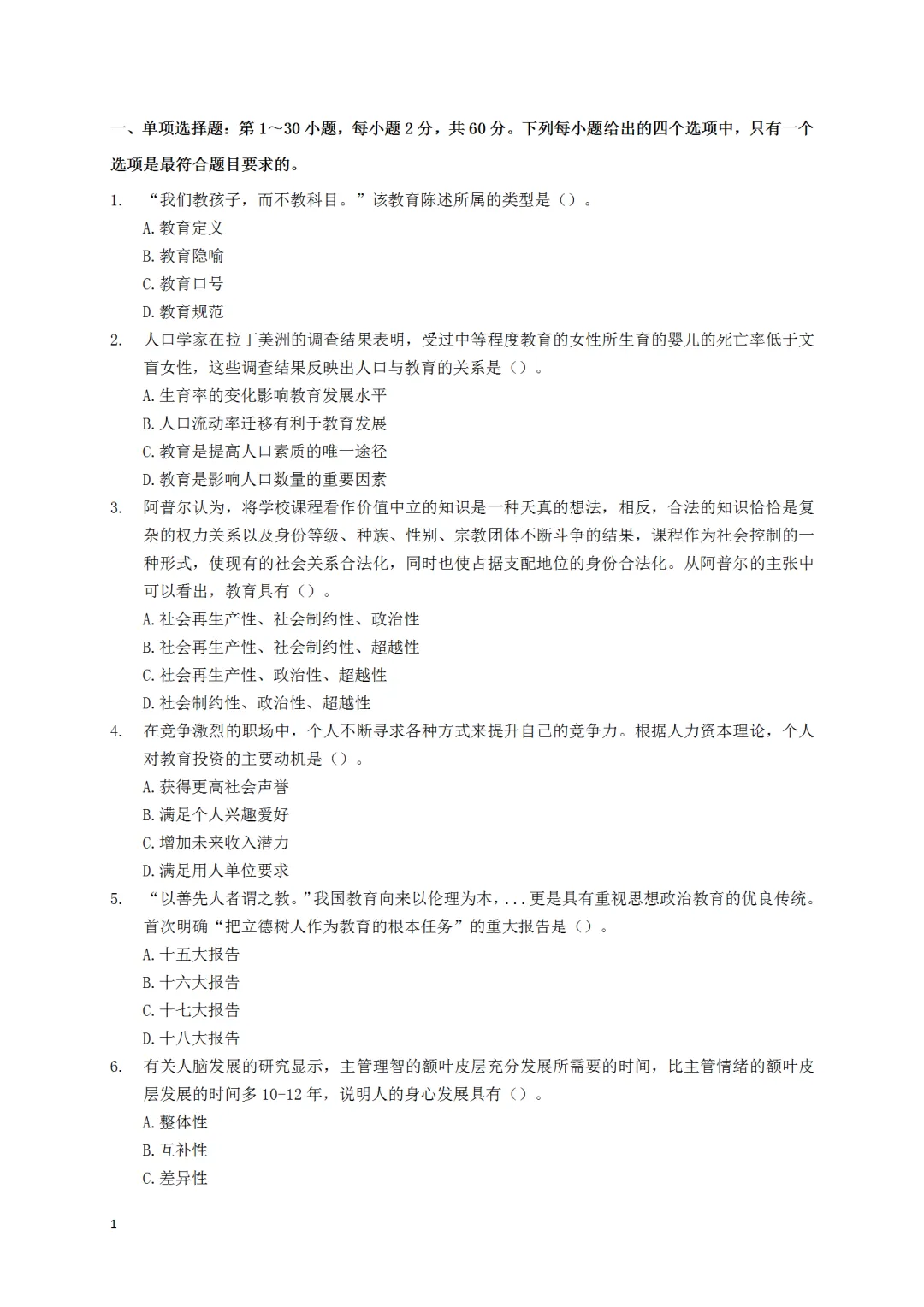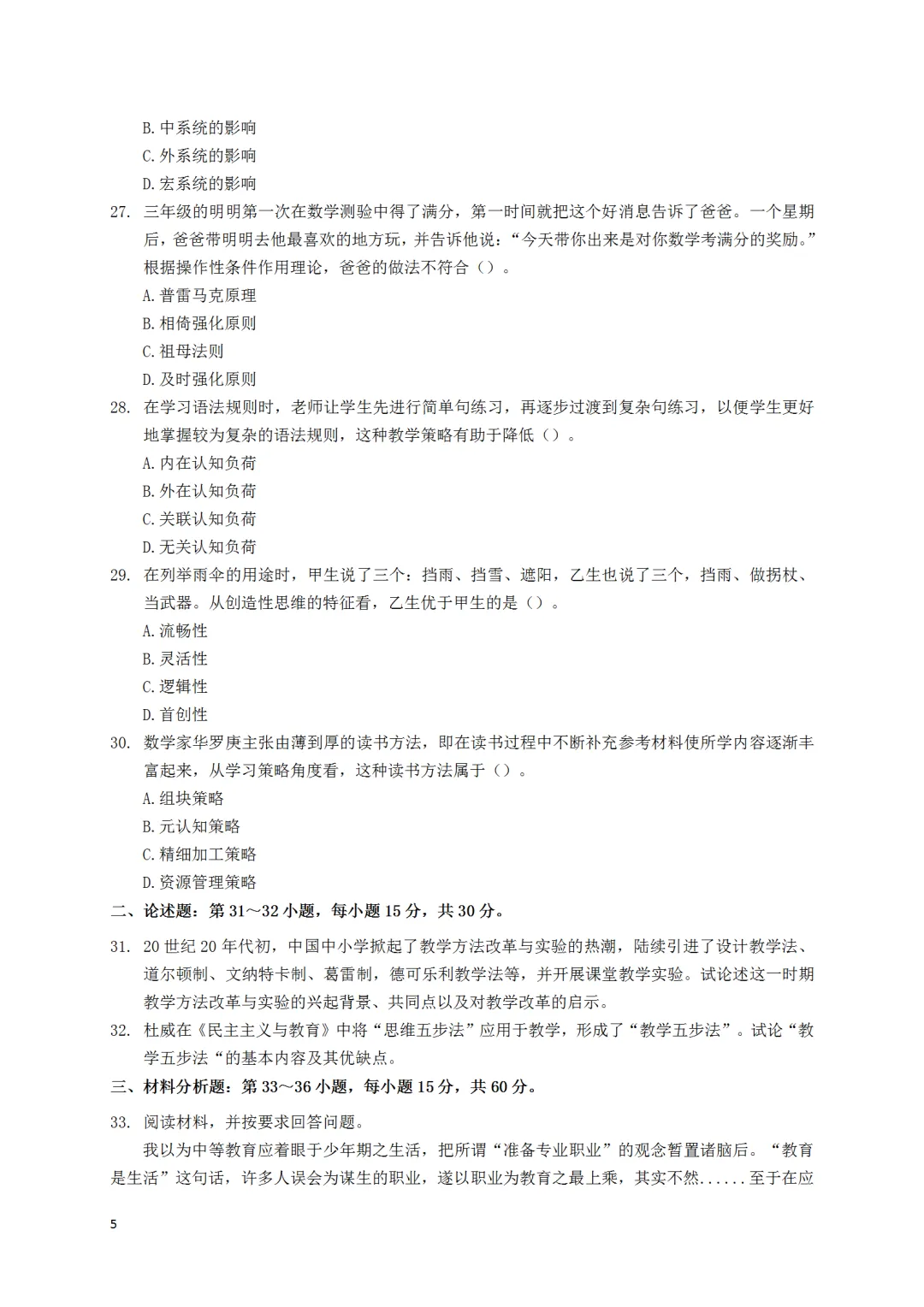 26年考研统考333教育综合真题