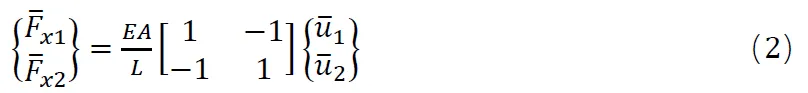 网架结构作为应用最为广泛的空间网格结构,尽管造型复杂多变,但最基础的静力计算程序核心代码仅需千余行,其计算理论简洁经典,可以说是空间结构设计必备的理论知识。本文对网架结构的静力计算理论进行梳理与总结。在这一步骤中,建立网架结构的线模型,并赋予杆件截面、材料荷载及约束等结构信息。在这一步骤中,先在单元坐标系中形成单元刚度矩阵,然后转换成整体坐标系中的刚度矩阵。单元坐标系中,在小变形时,节点1,2的节点力与节点位移的关系可表示为为便于将单元刚度矩阵组装到整体刚度矩阵中,需要将公式(2)、(3)转换成整体坐标系oxyz中。记杆件在整体坐标系中的单位方向向量为