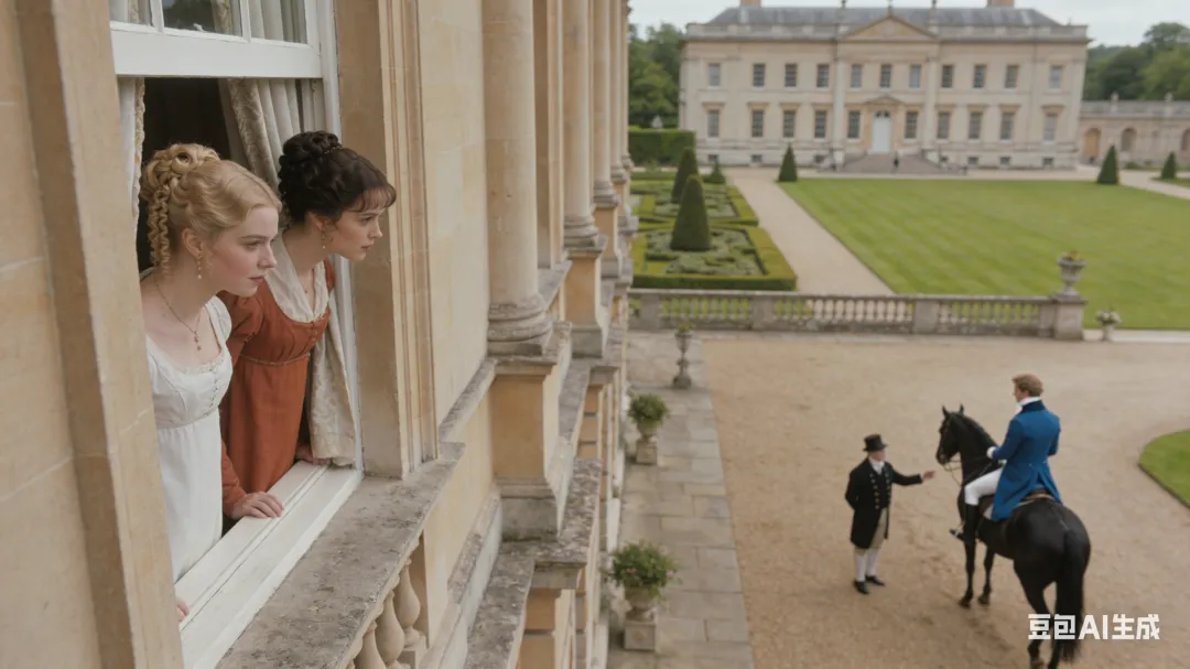 A few days later, Mr. Bingley returned Mr. Bennet’s visit, sitting about ten minutes with him in the library. He had hoped to see the young ladies, whose beauty he had heard much about, but he saw only the father. The ladies were somewhat more fortunate, for they saw from an upper window that he wore a blue coat and rode a black horse.